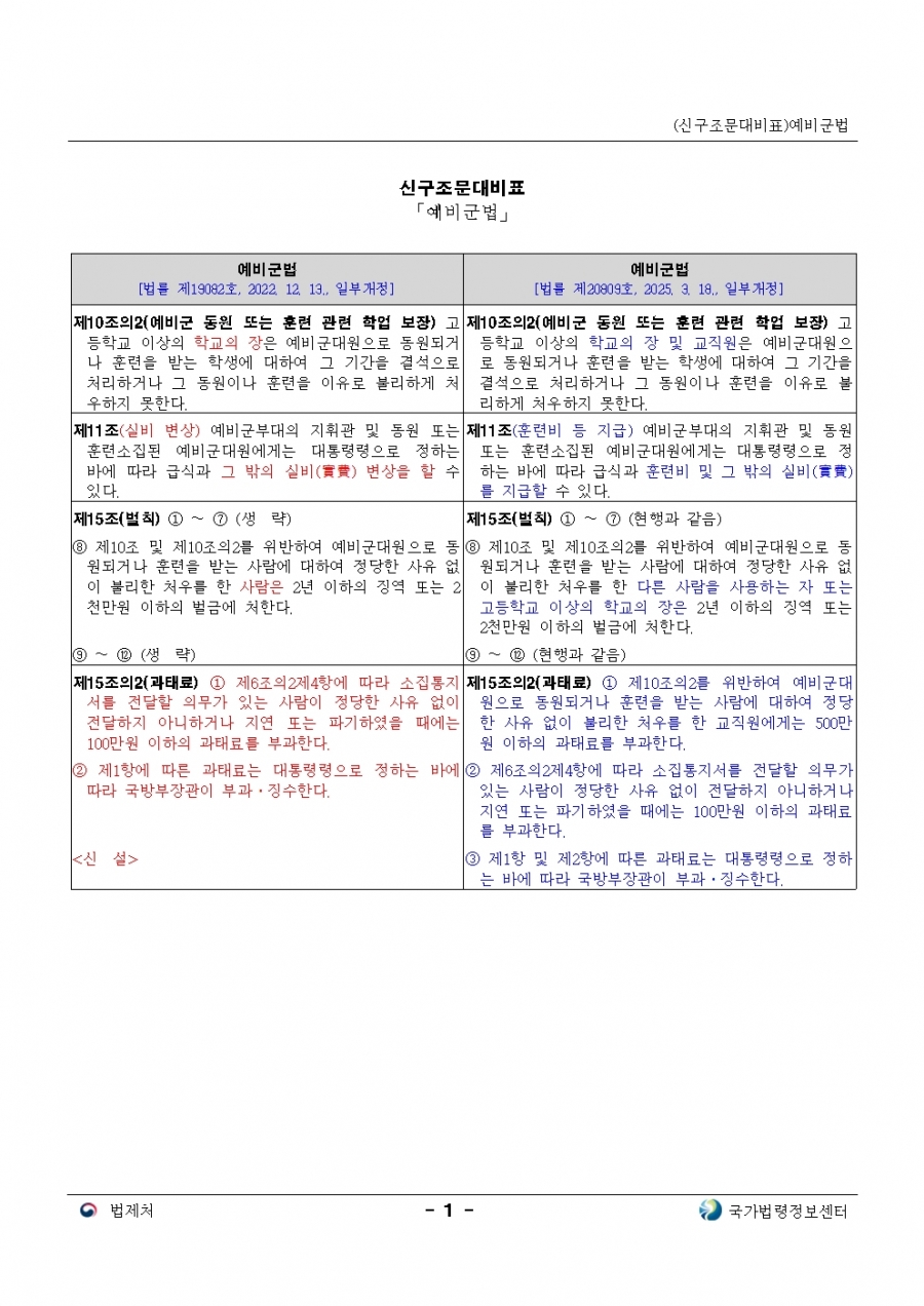 예비군법 개정(시행일 25.9.19) 26년 전반기부터 적용