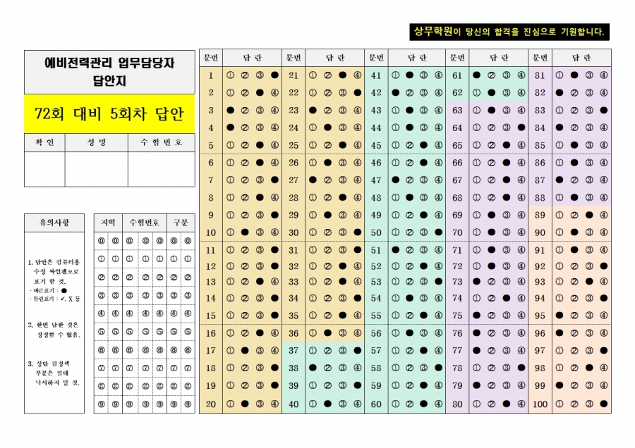 72회 3회차 수정사항 및 정답 OMR (사진)