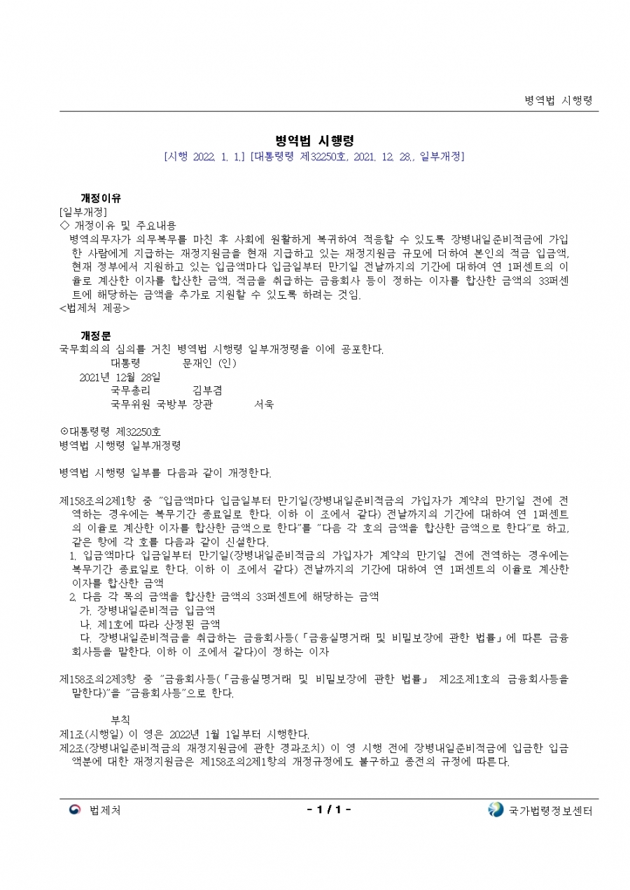 병역법 시행령 개정 시행 1월 1일 부(22년 전반기 부터 적용)