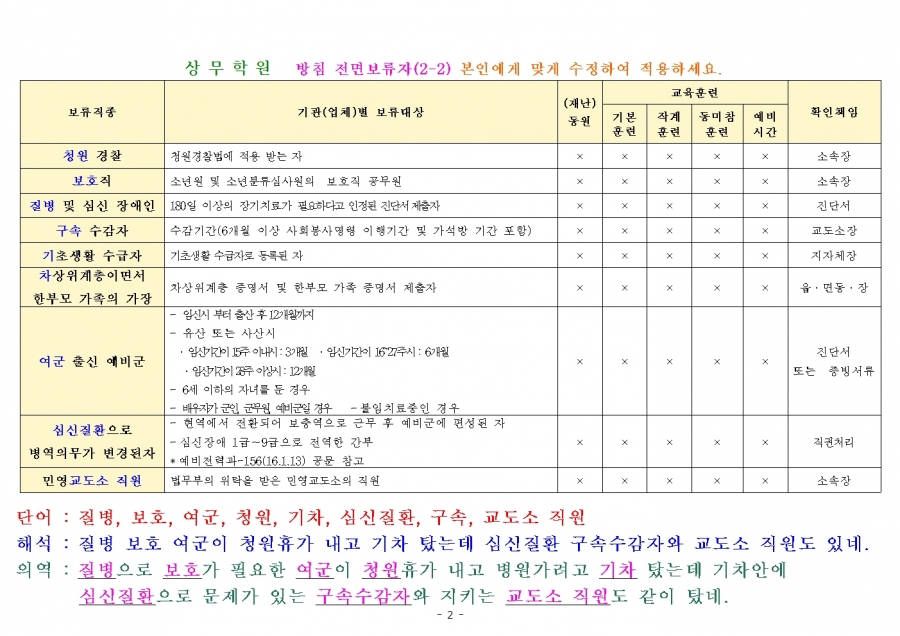 현역병 및 사회복무요원 지연 입소관련