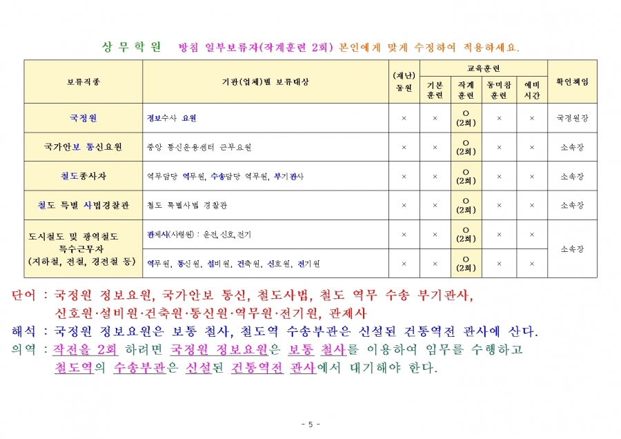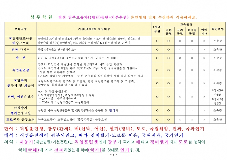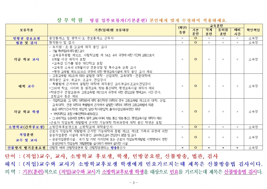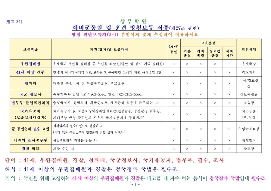 예비군 교육훈련 훈령 개정내용 참고