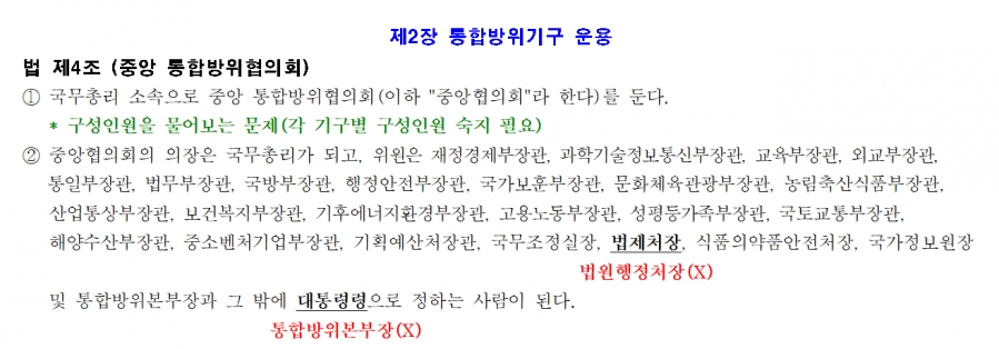 1. 통합방위법 4조 미수정으로 수정필요