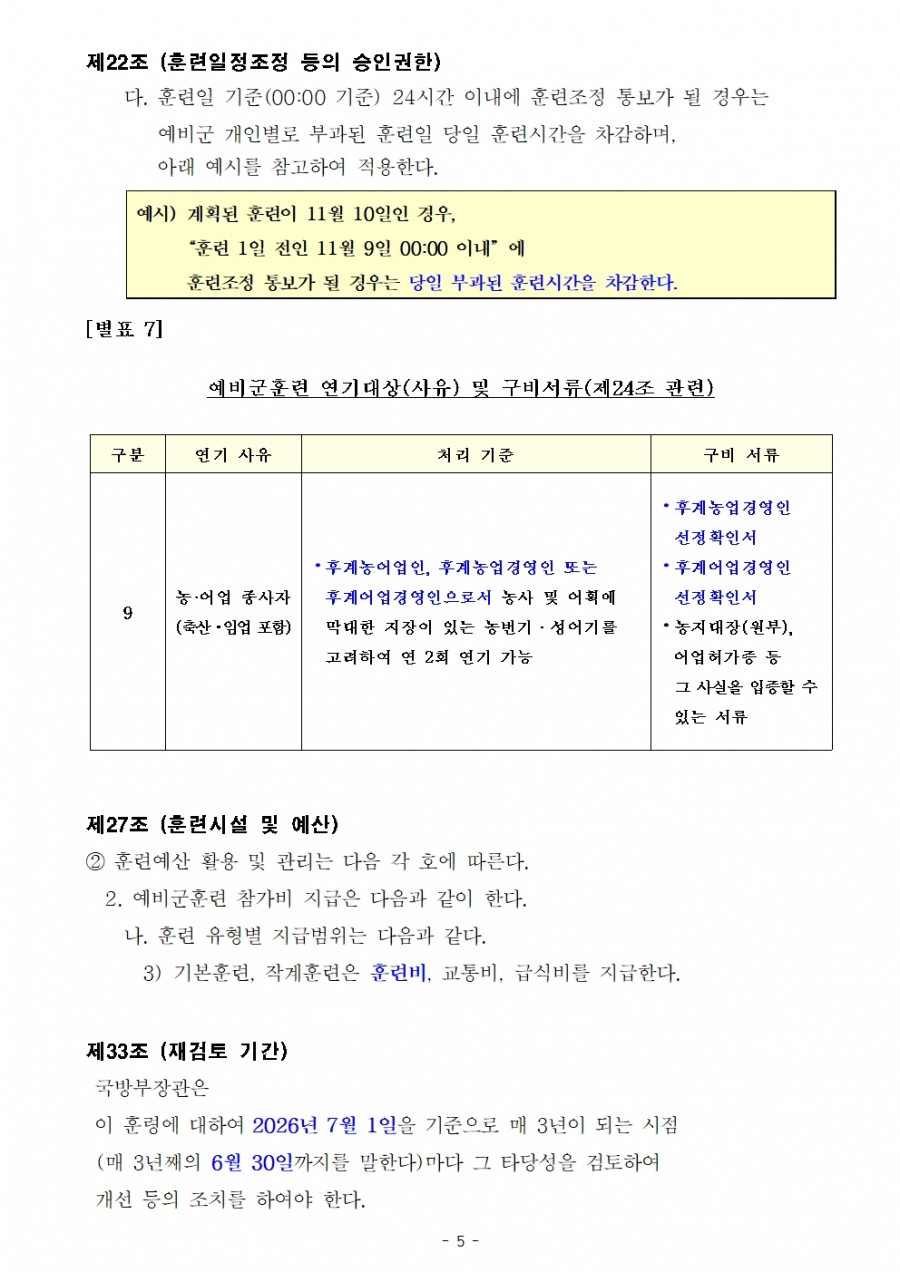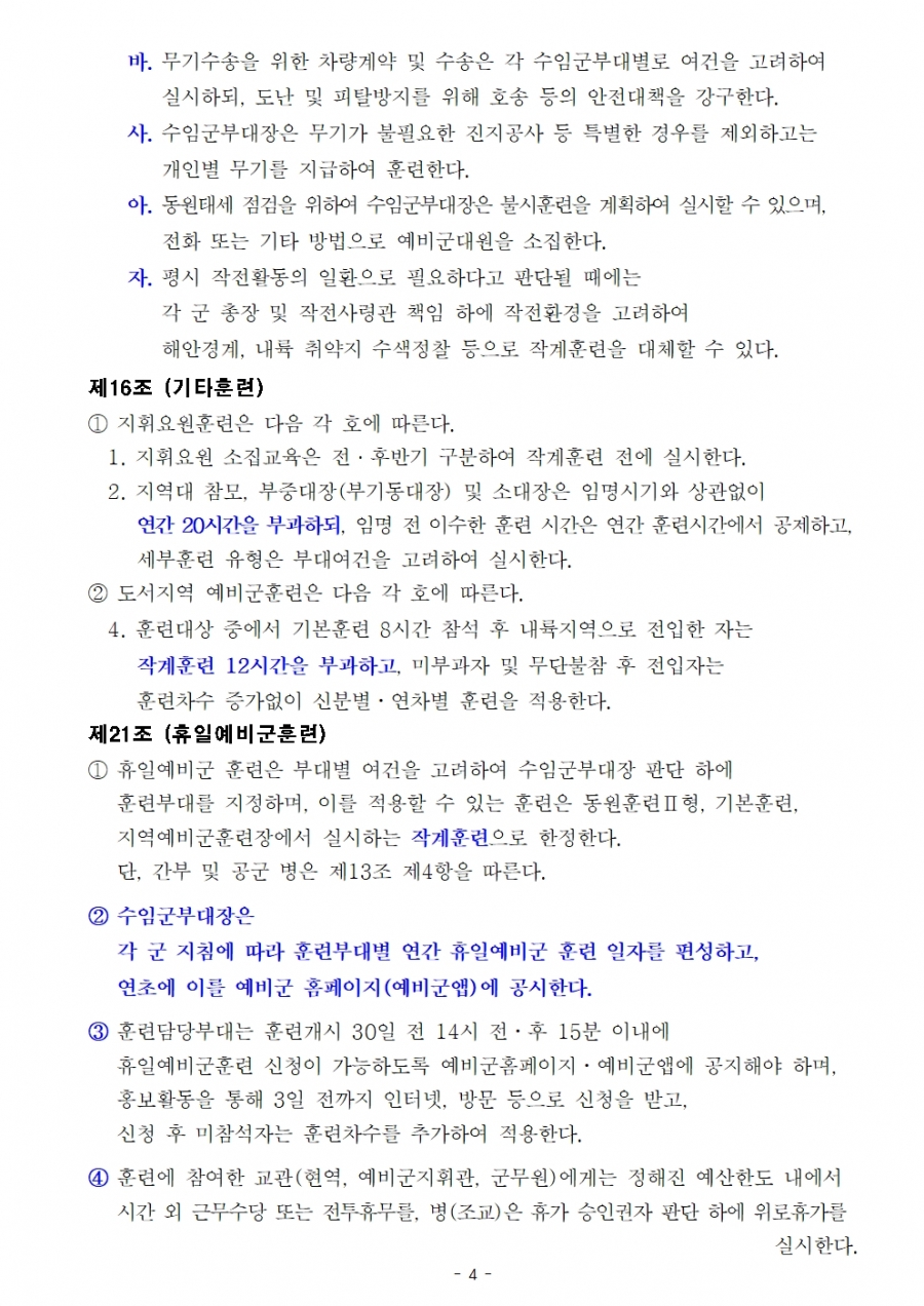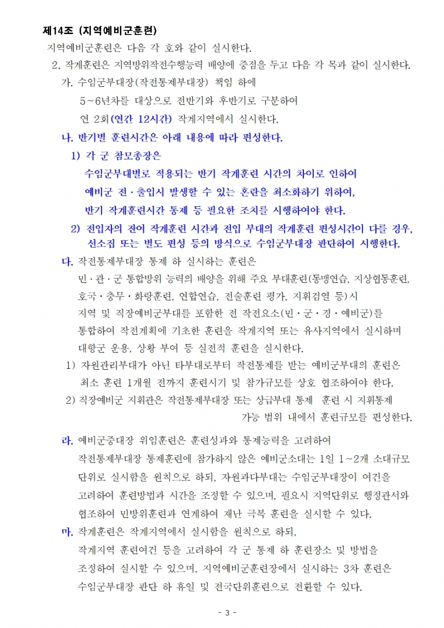 예비군 교육훈련 훈령 개정(26년 전반기 부터 시행) 및 수정 후 원문파일