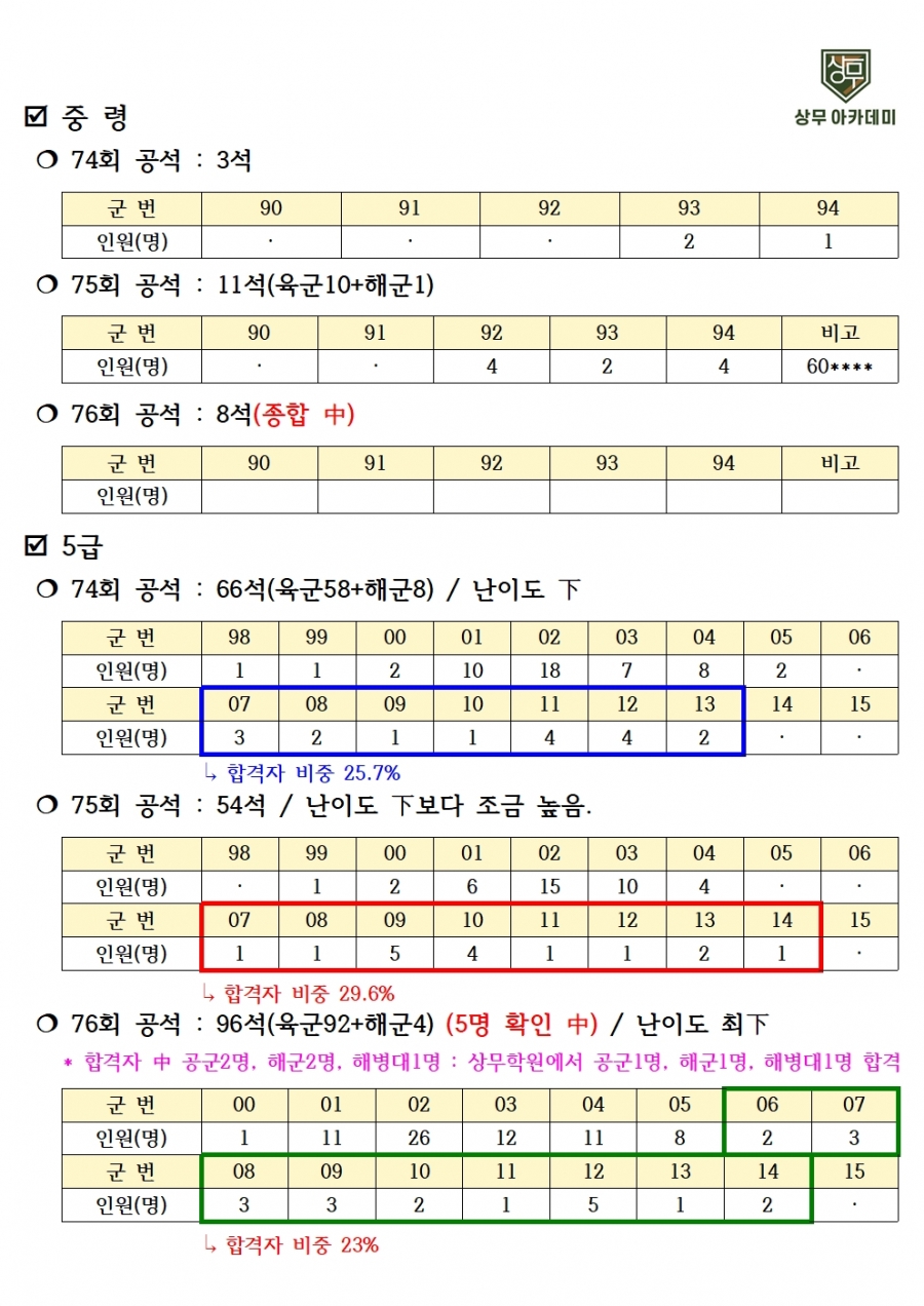 25년 전반기 합격자 중 직장 및 재임용 후 합격하신 분의 군번은 파악 중입니다.