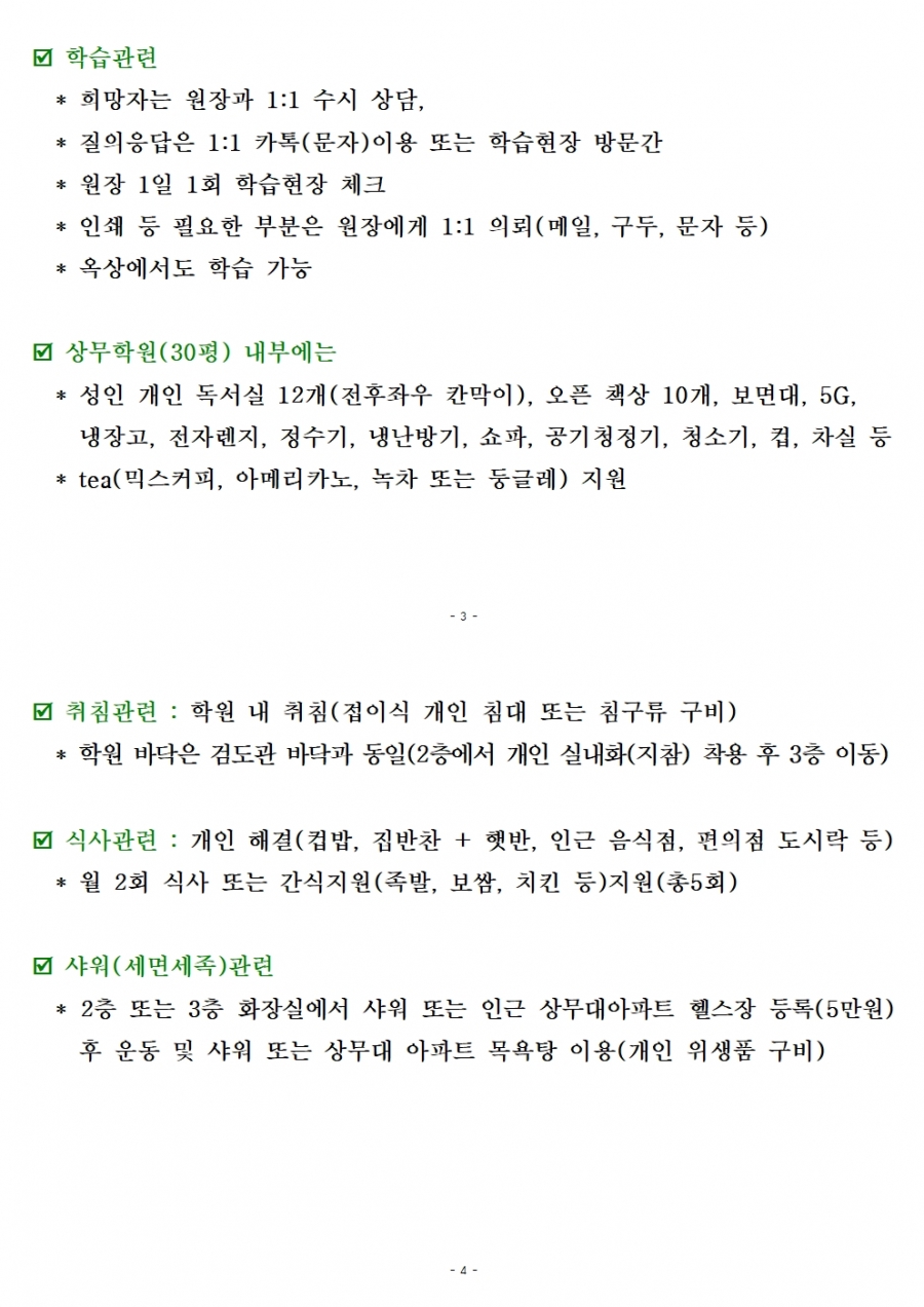 학원 숙식인원 모집 및 건의사항 조치 완료