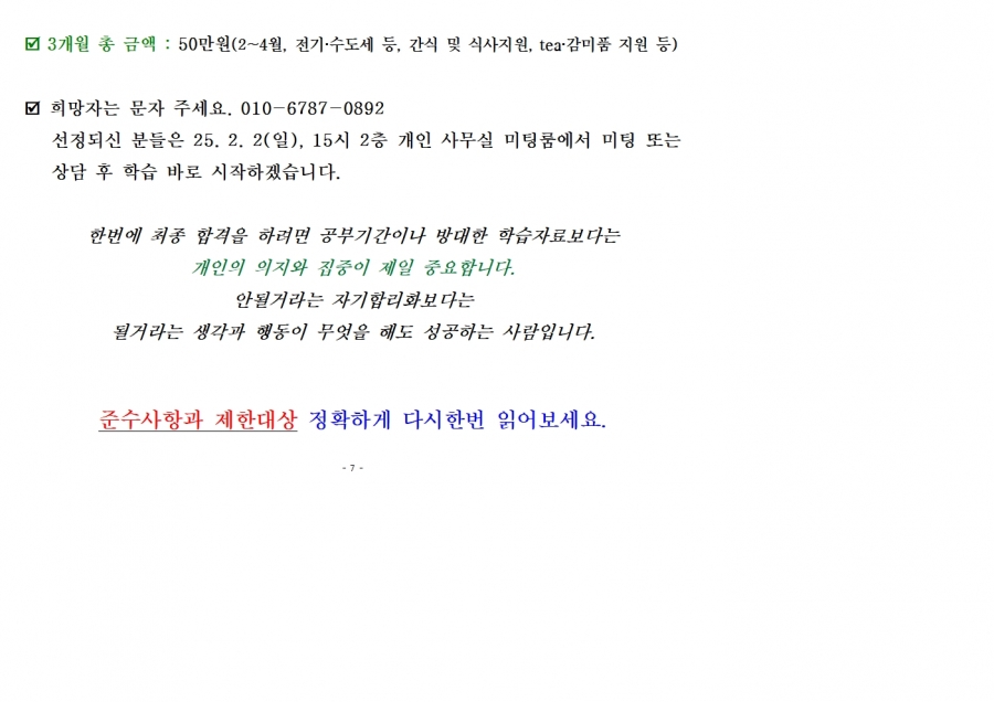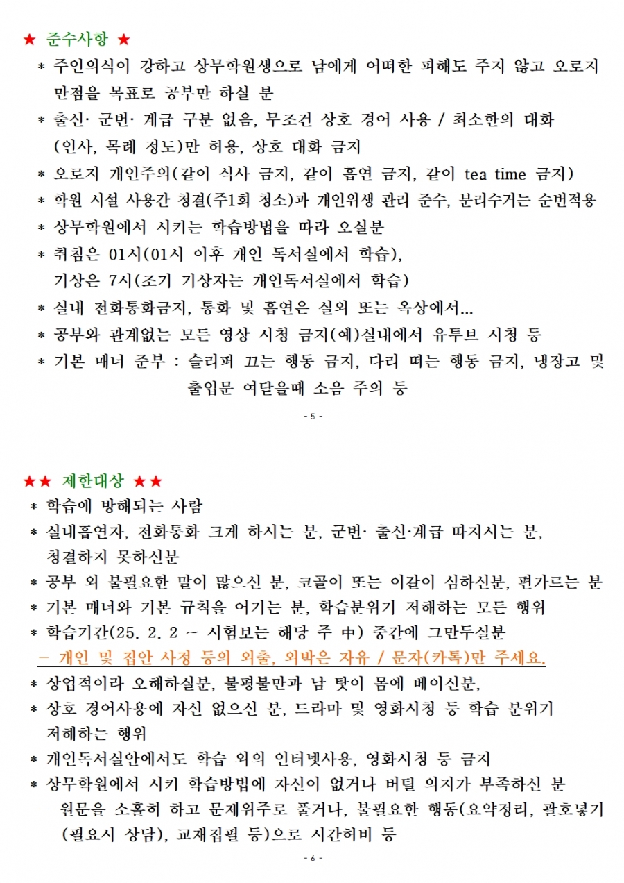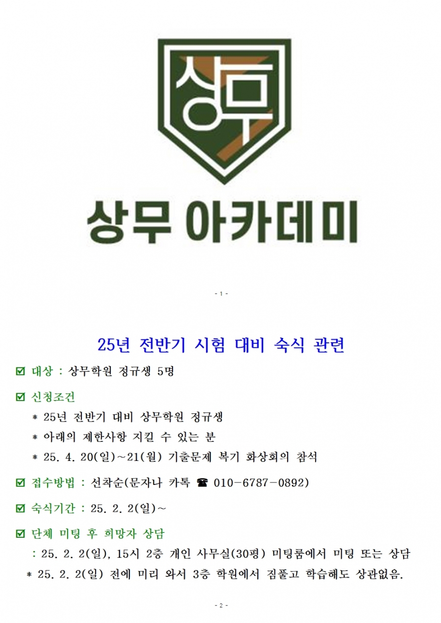 25년 전반기(76회) 숙식 인원 모집