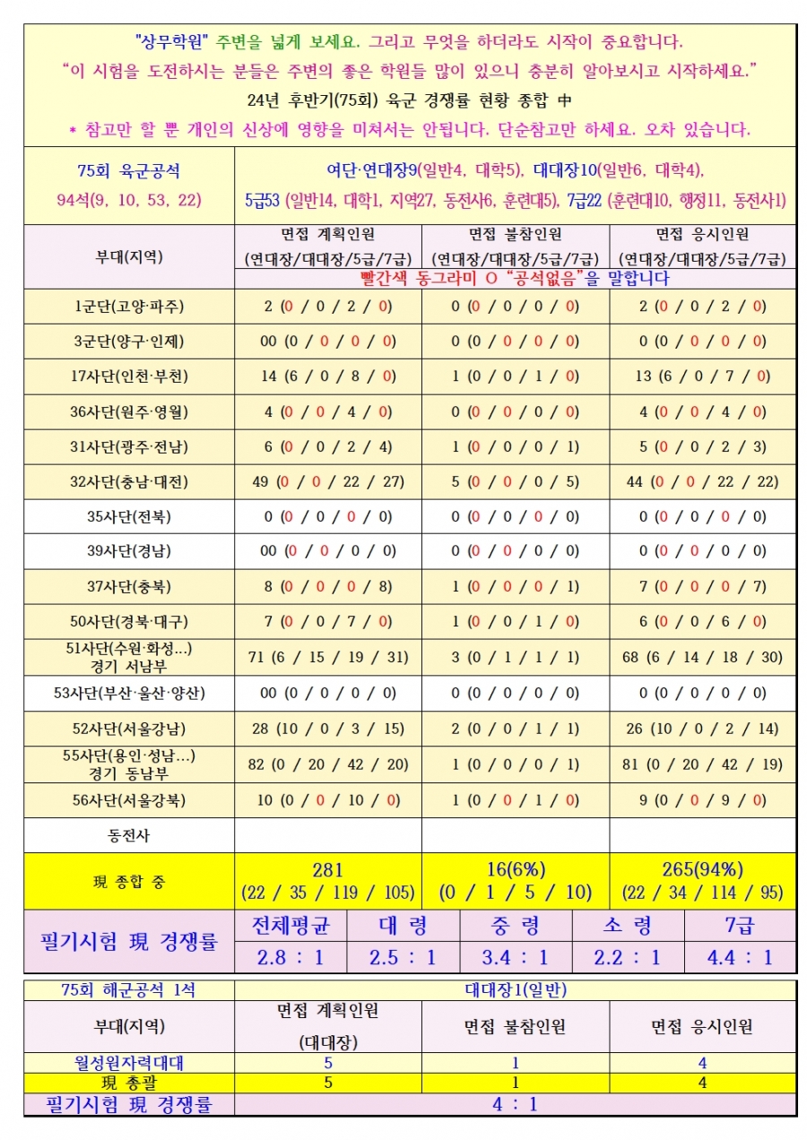 75회 육군, 해군 최종경쟁율 (단순참고)