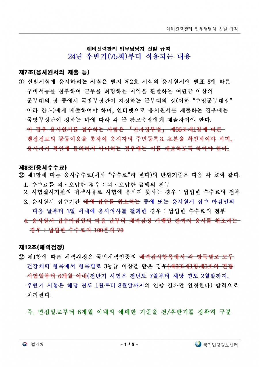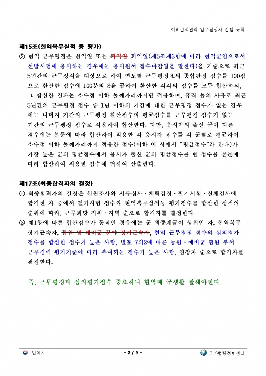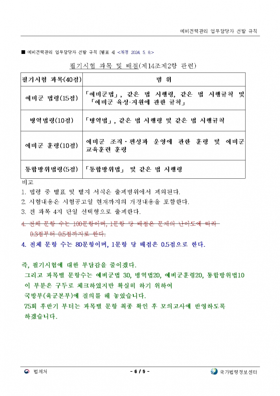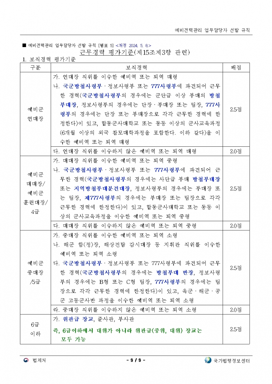 예비전력업무담당자 선발규칙 개정(24년 후반기 부터 적용)