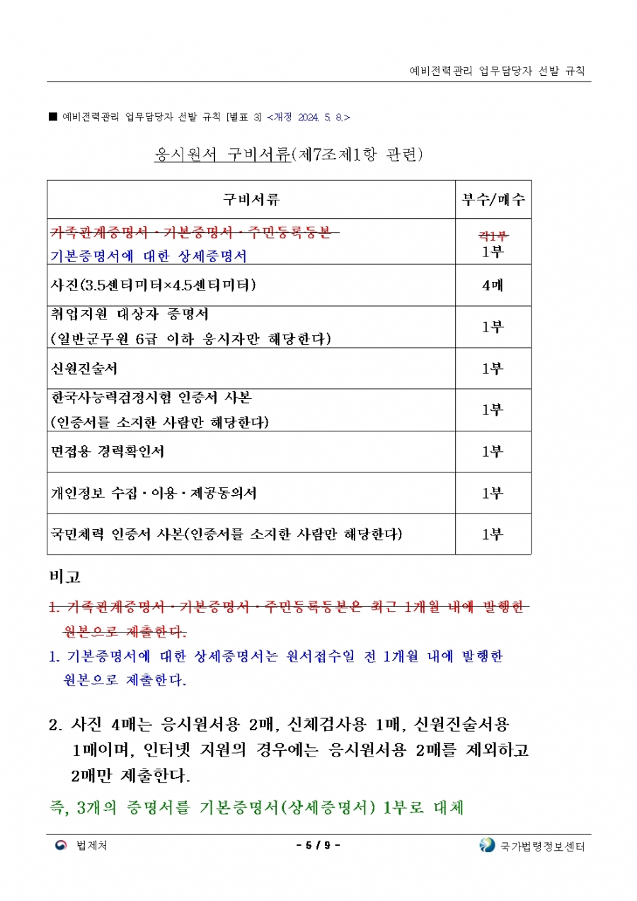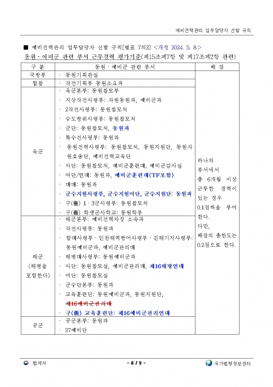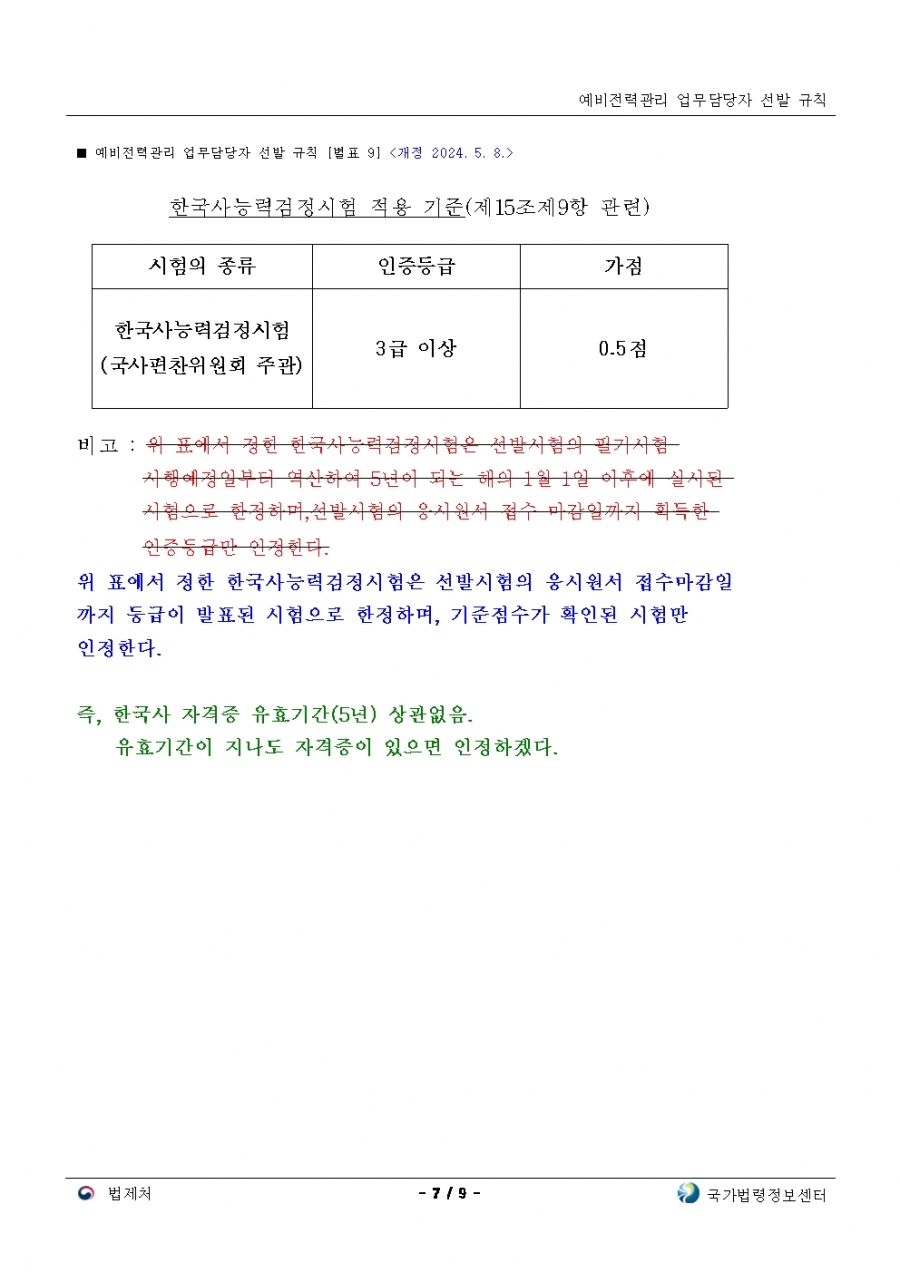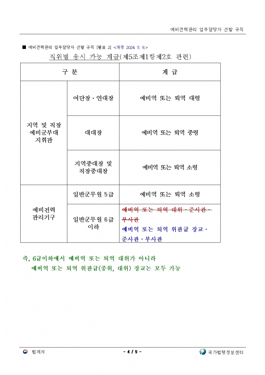 예비전력업무담당자 선발규칙 개정(24년 후반기 부터 적용)