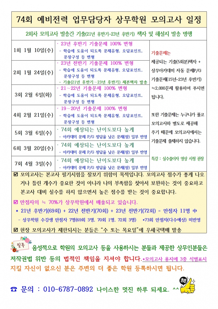 상무학원 수강생분들 응시번호 부탁드립니다.