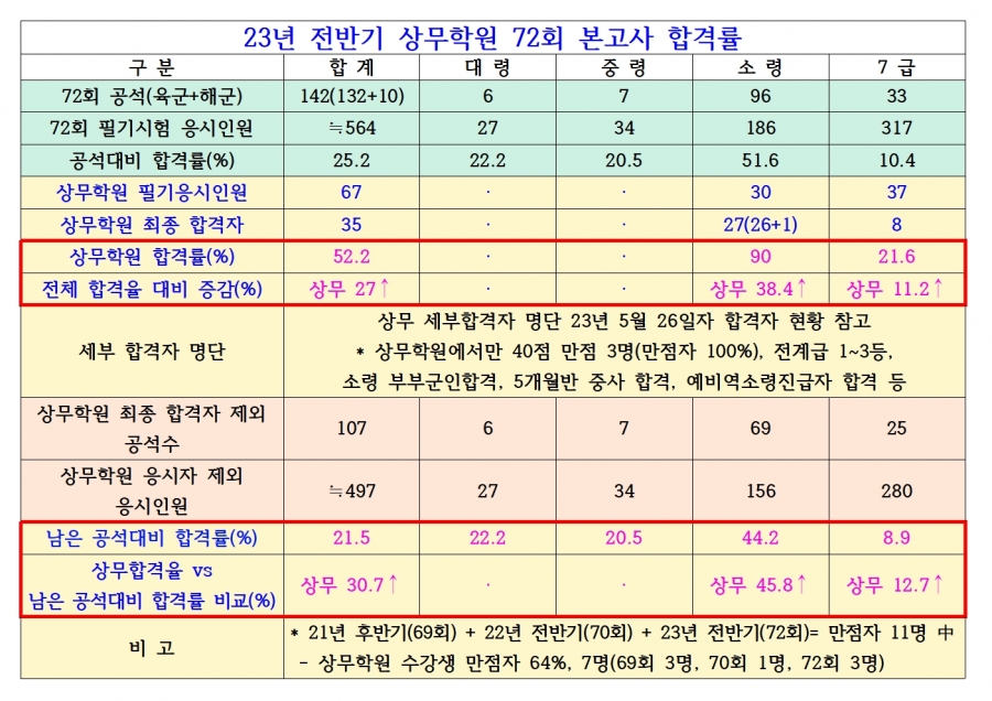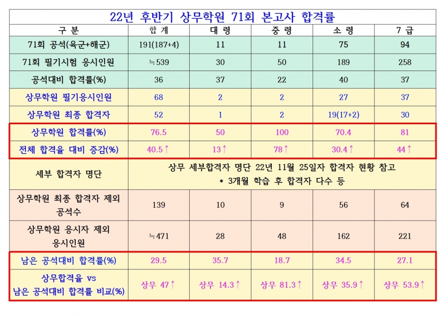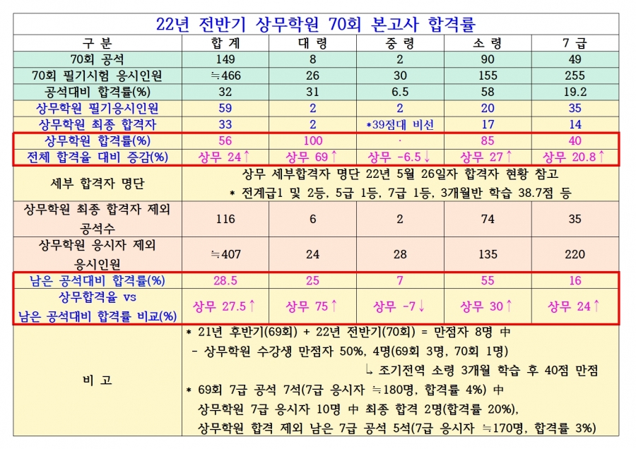 상무학원 수강생분들 응시번호 부탁드립니다.