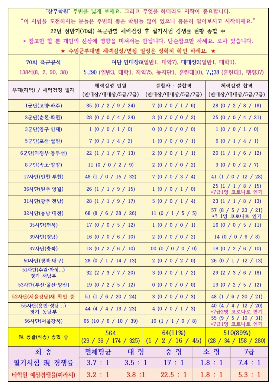 72회 육군, 해군 예상 경쟁율 단순참고