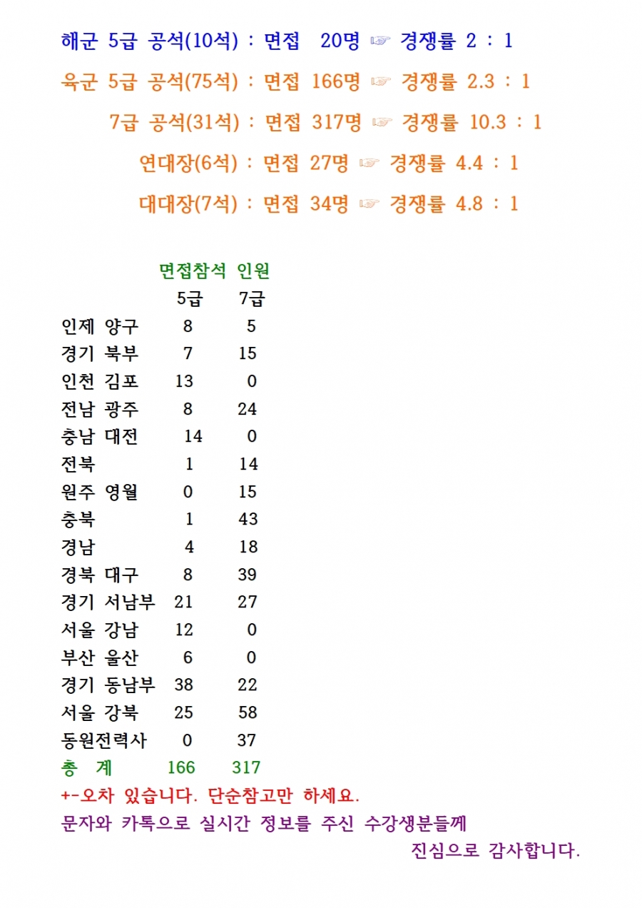 72회 육군, 해군 예상 경쟁율 단순참고