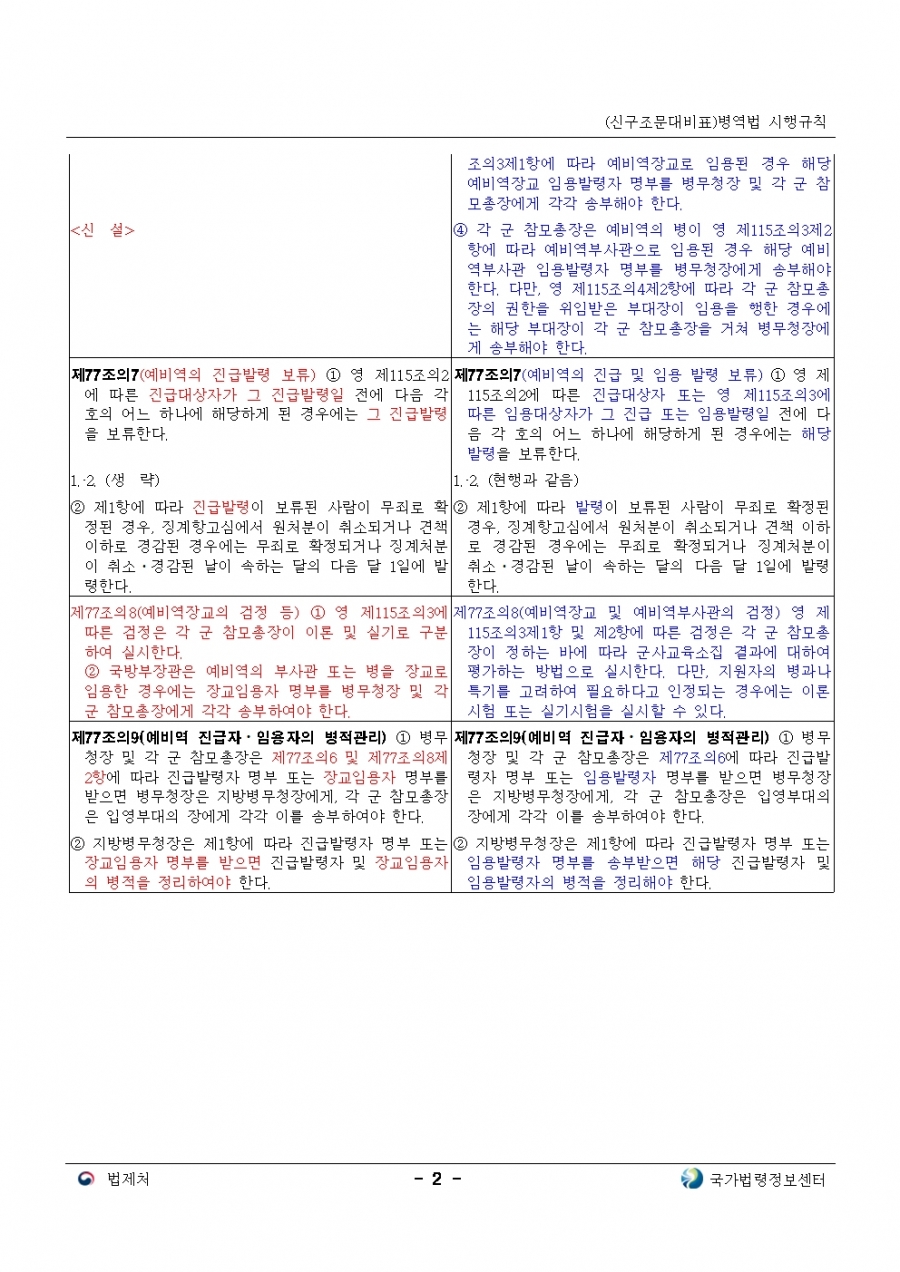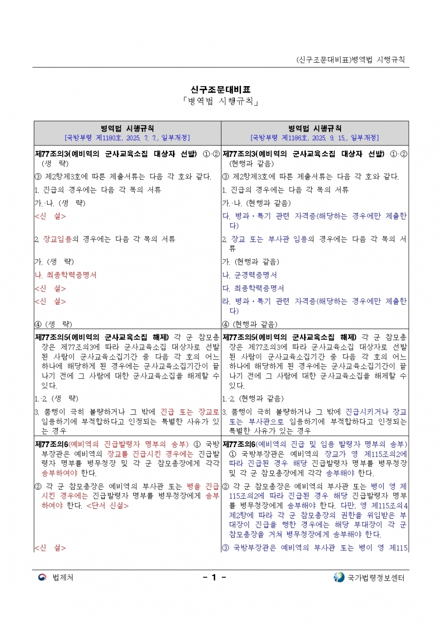 병역법 시행규칙신구조문대비표 25.10.1 시행, 개정25.9.15.hwp