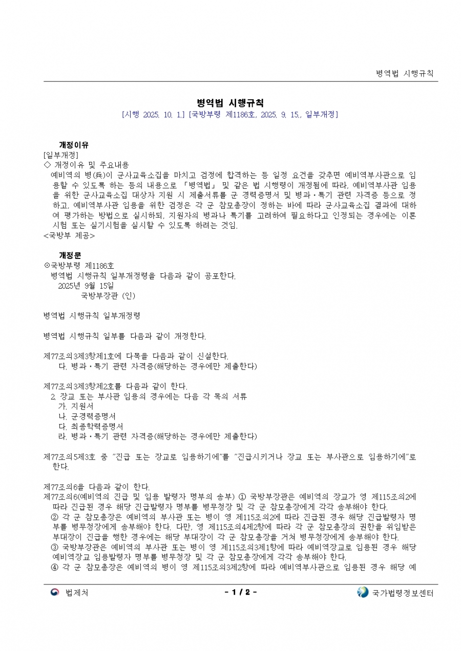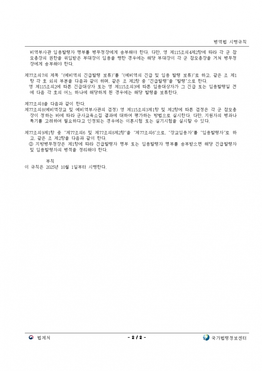 병역법 시행규칙_개정문개정이유 개정 25.9.15.hwp