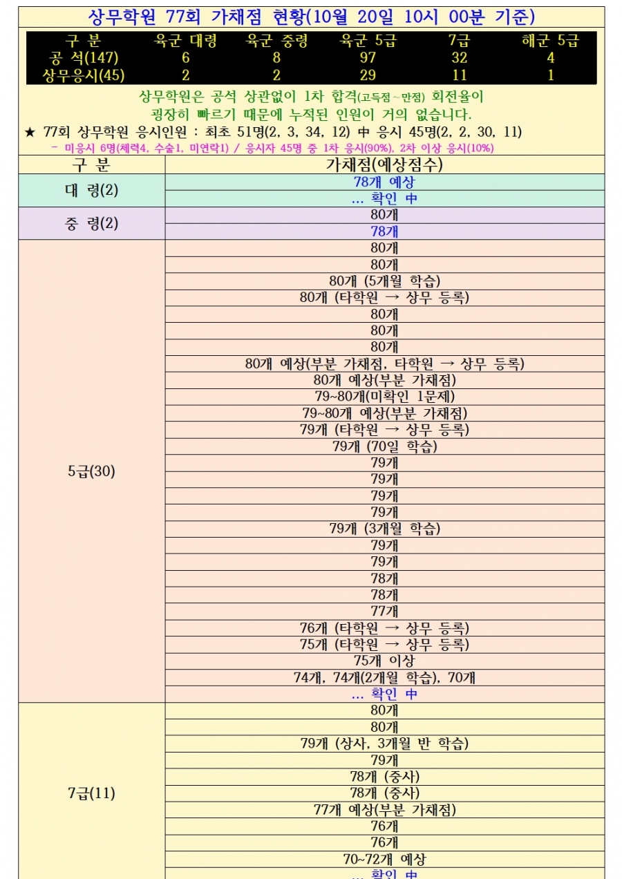 상무학원 77회 예상 합격율은 80% 이상 될듯 합니다.