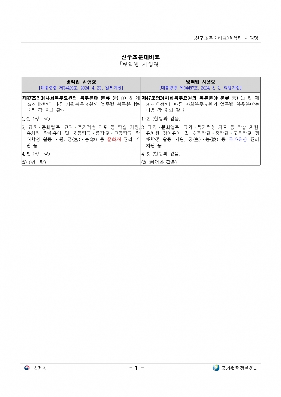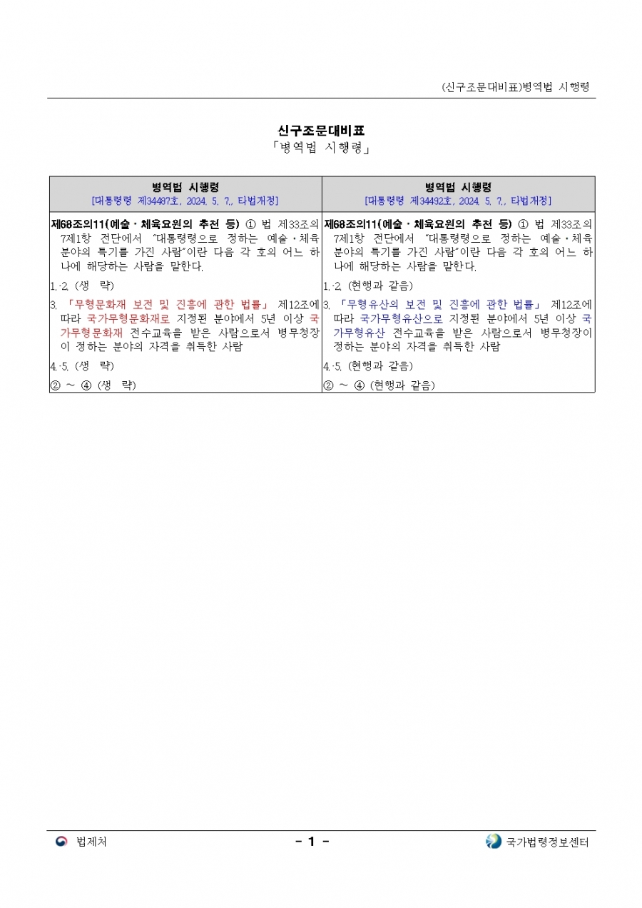 병역법 시행령 개정(시행 5월 17일, 24년 후반기 부터 적용)