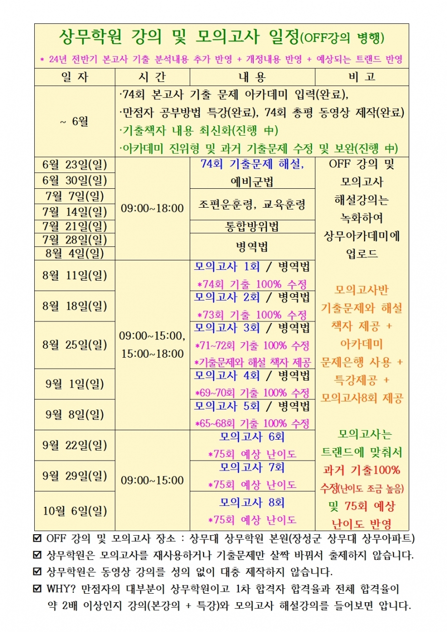 상무학원 강의 및 모의고사 일정