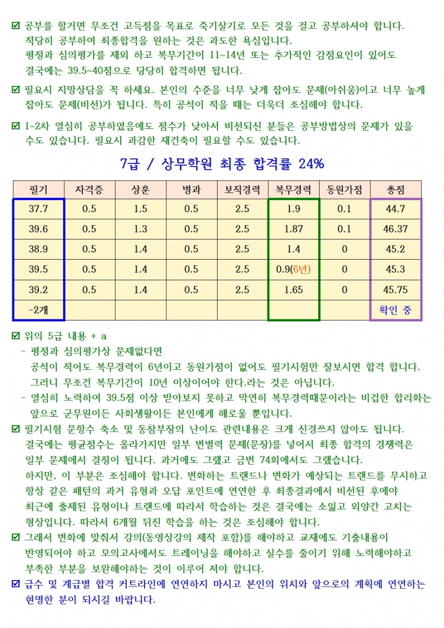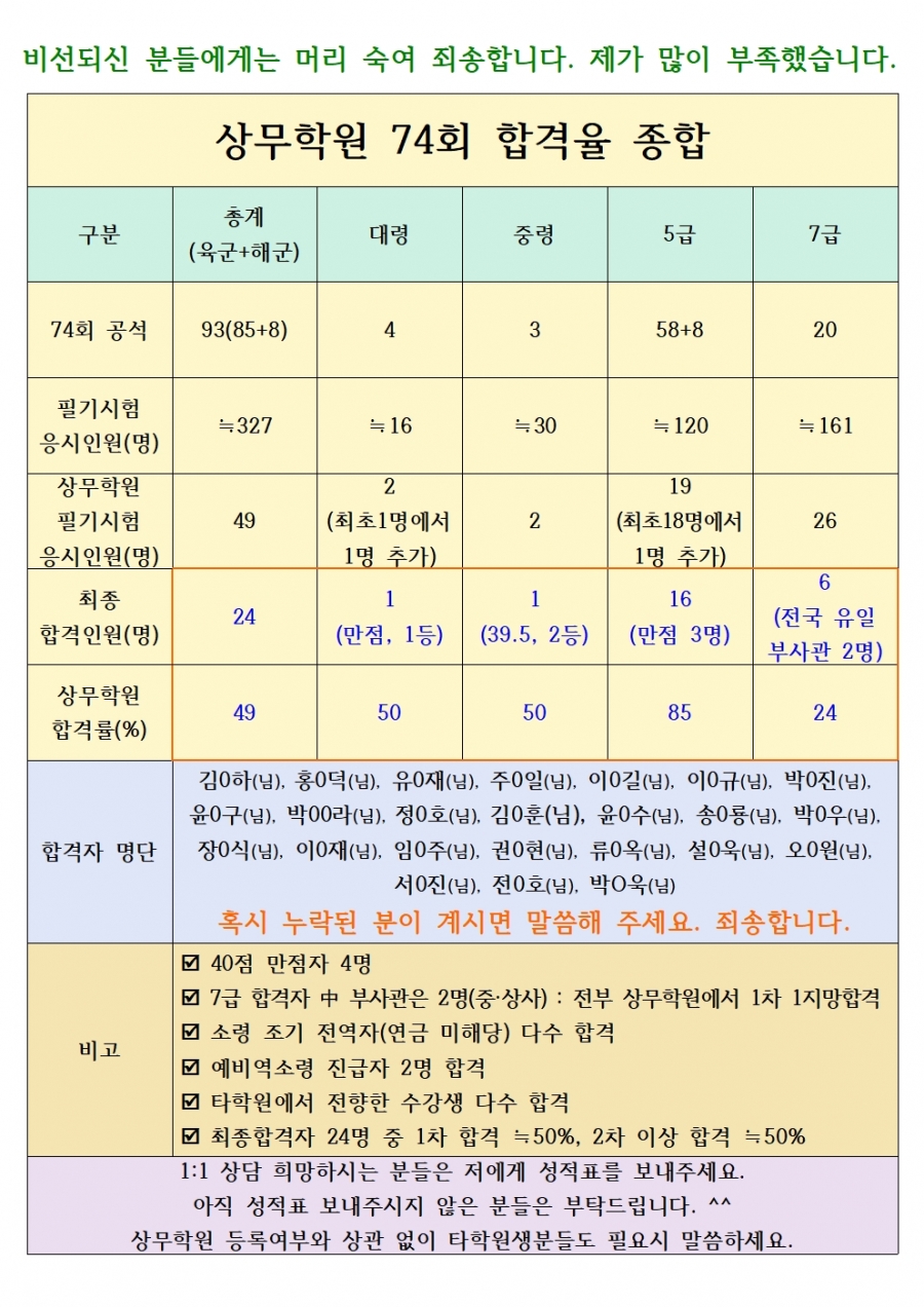 74회 상무학원 최종 합격자 2차 종합 및 20시 기준 만점자 4명