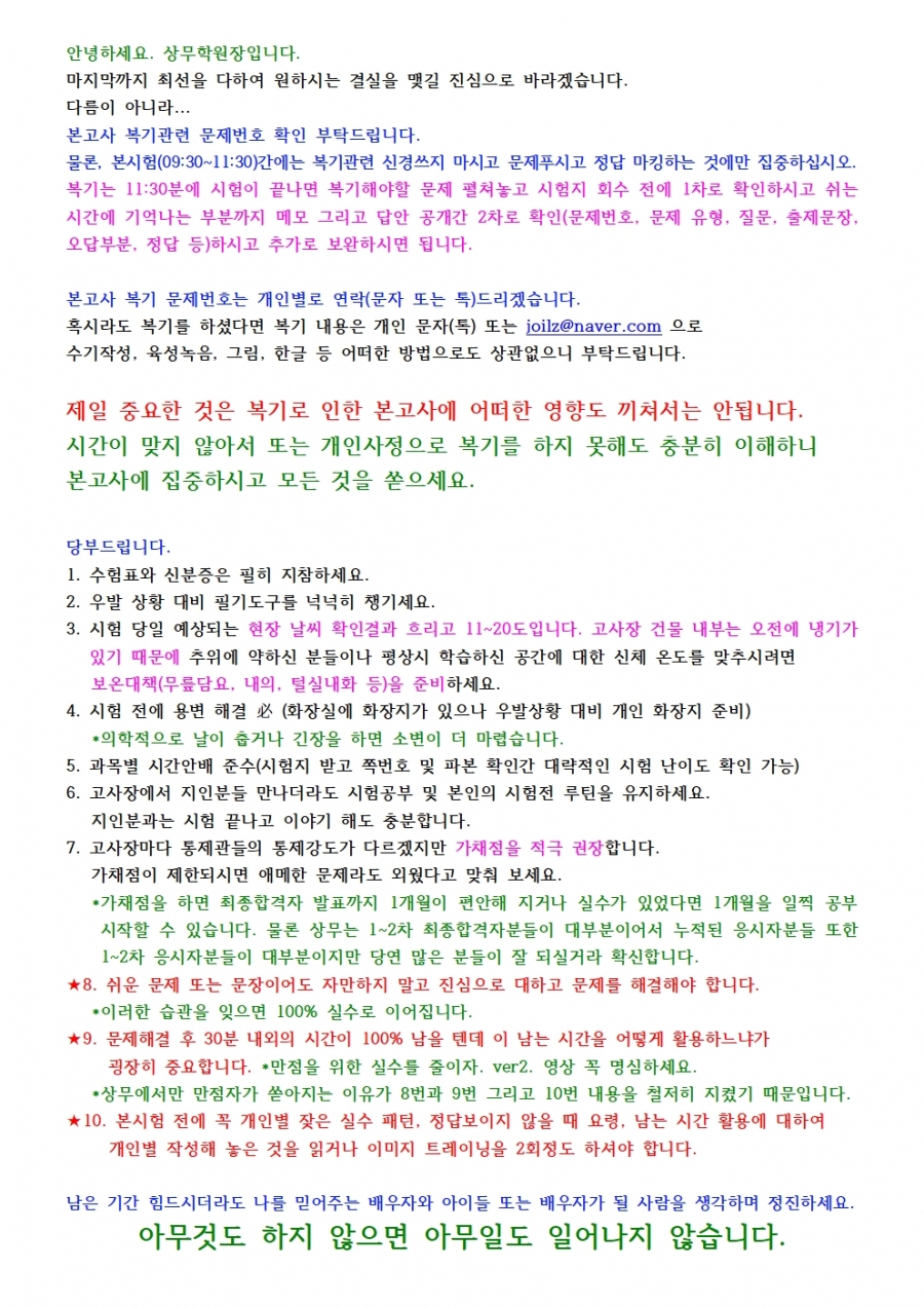 74회 본시험간 당부의 말