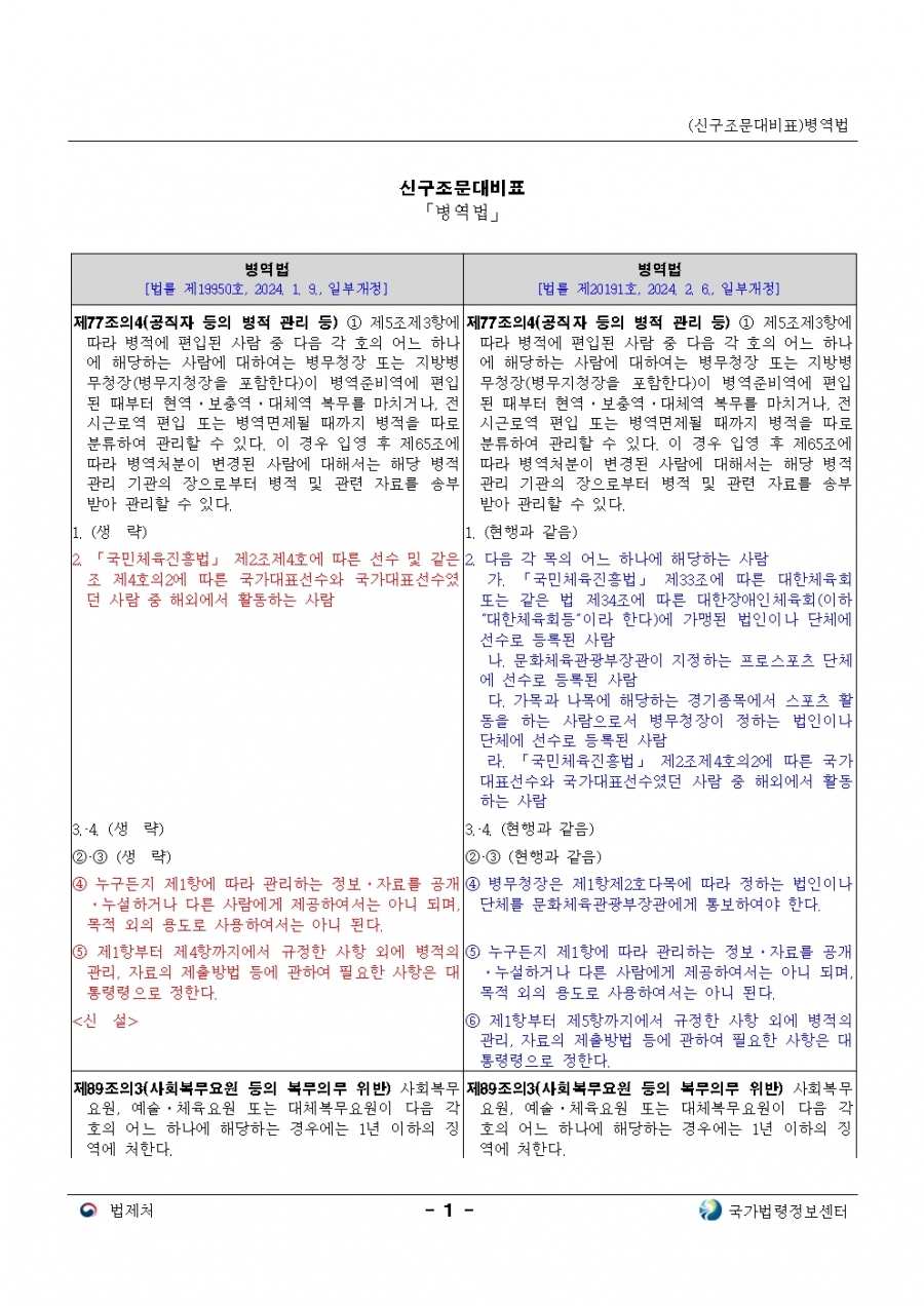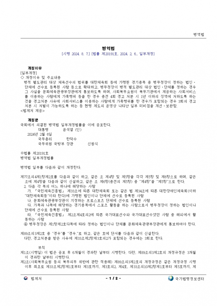 74회 병역법 시험범위 1월 31일 시행일 기준에 따른 내용 수정