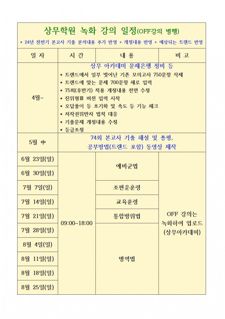 상무학원 강의 일정 등
