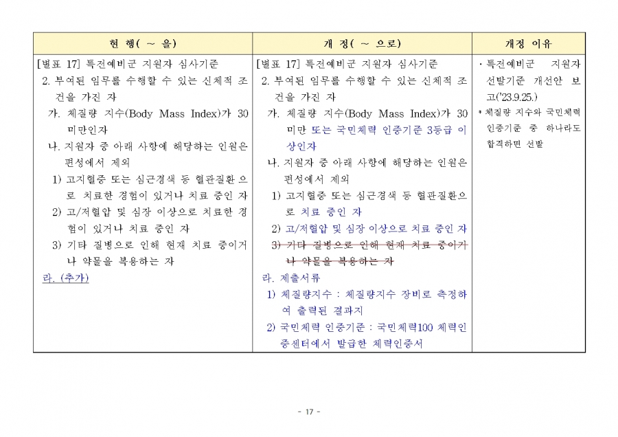 병역법 시행령 개정(시행일 24.2.1, 24년 후반기부터 적용)
