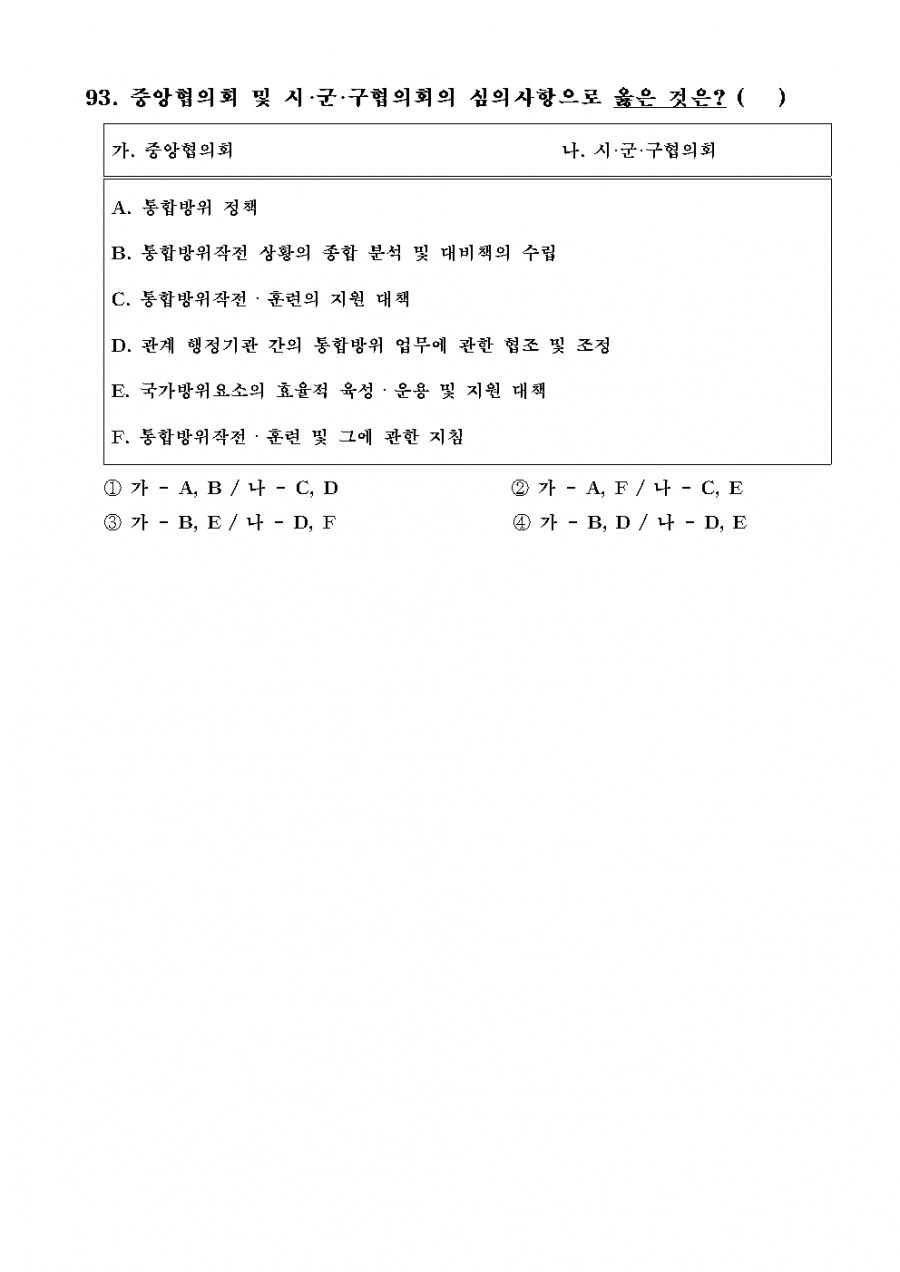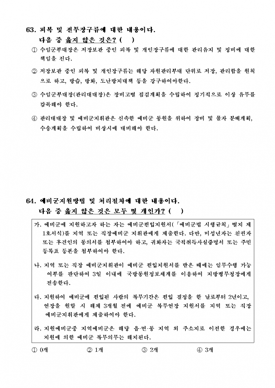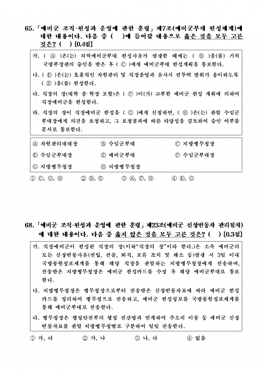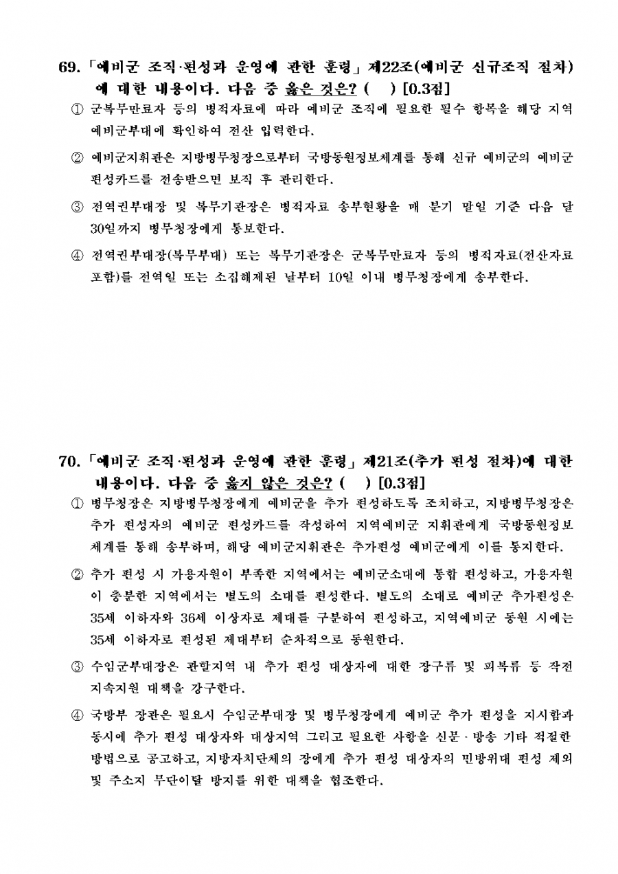 예비군훈령 및 통합방위법 개정에 따른 기출 제본책자 수정 내용(문제 사진)