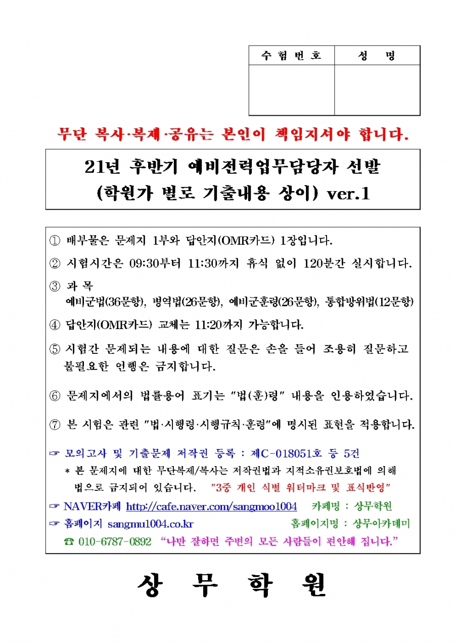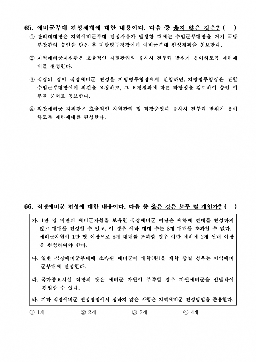 예비군훈령 및 통합방위법 개정에 따른 기출 제본책자 수정 내용(문제 파일)