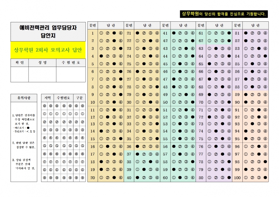 2회차 모의고사 정답 omr