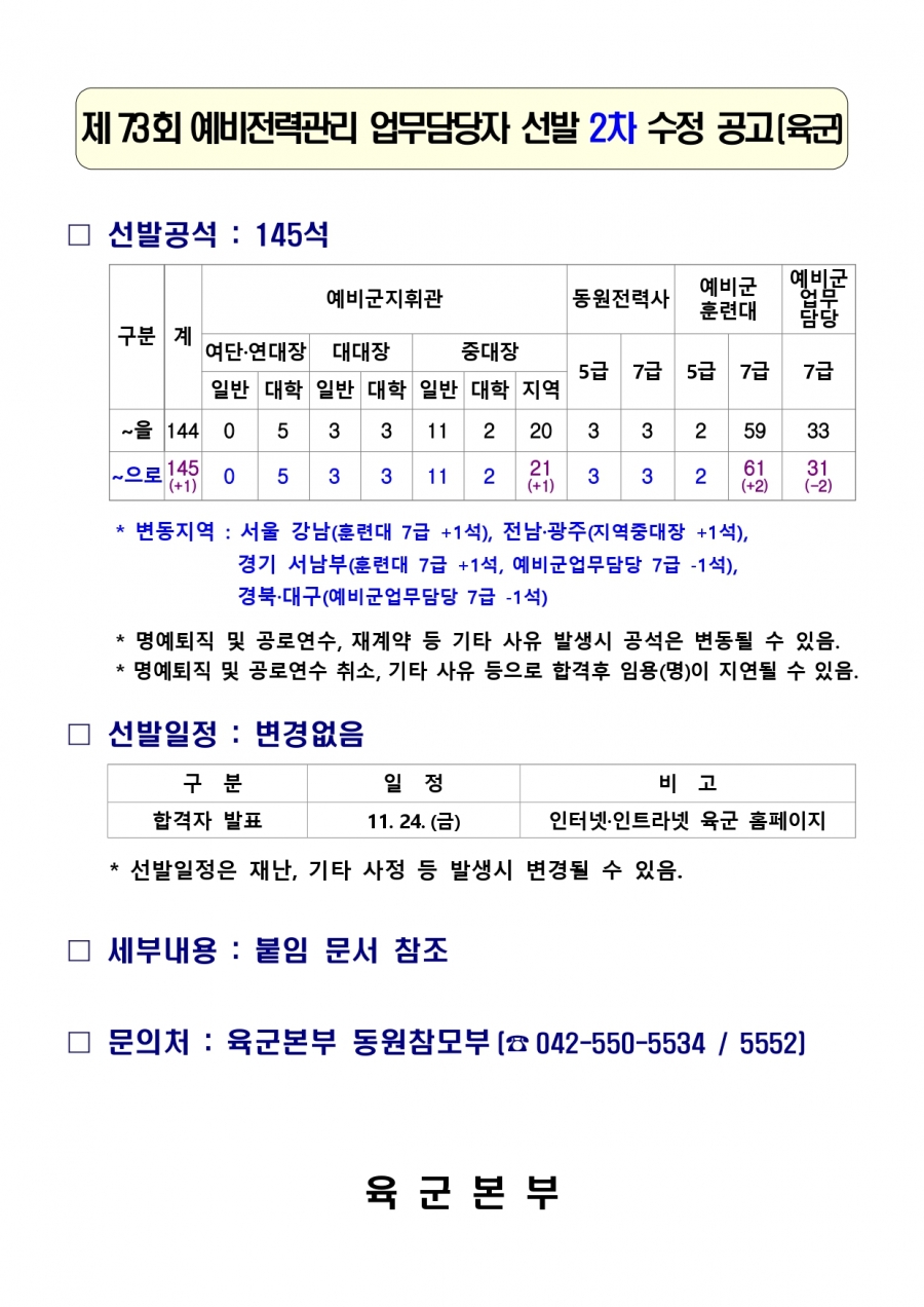 73회 예비전력관리 업무담당자 선발 공고 2차 수정