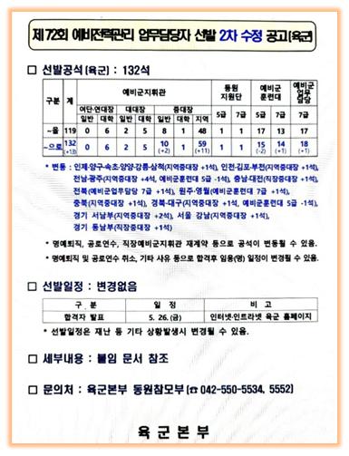 72회 예비전력관리 업무담당자 선발 2차 수정 공고(육군)