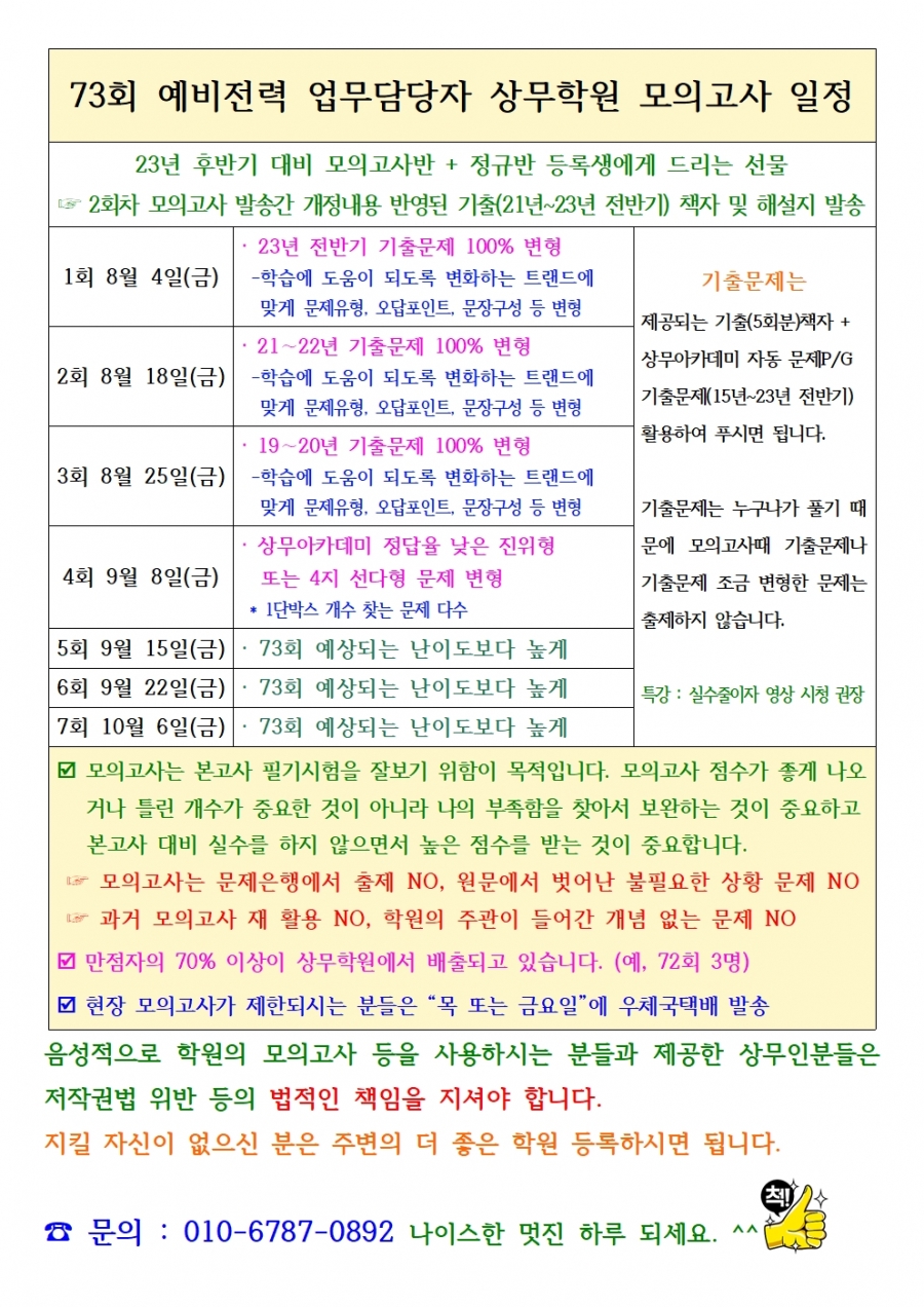 상무 모의고사 학원 본원에서 치르시는 분은 문자 주세요.