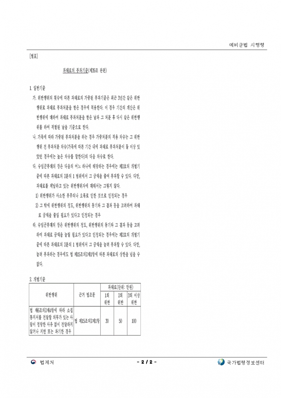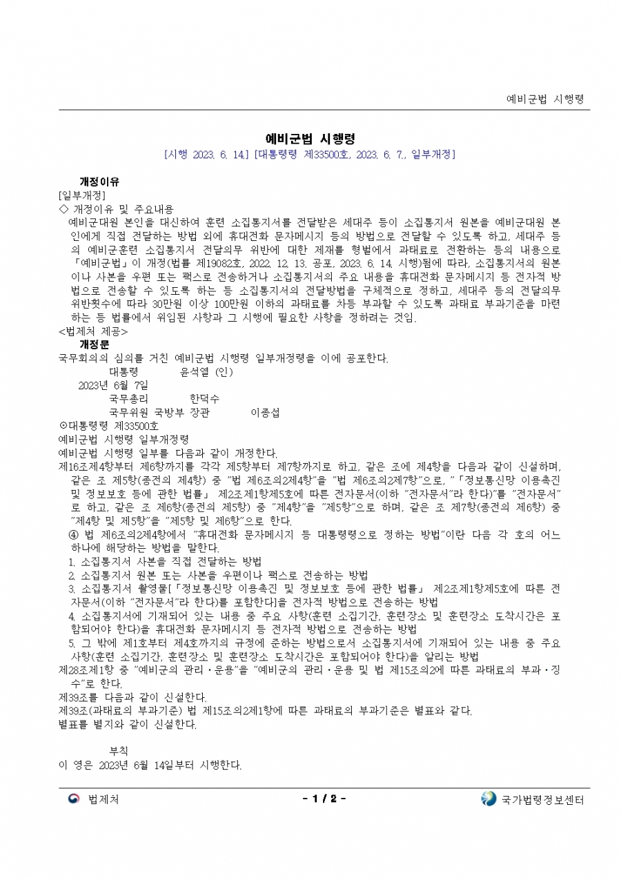 예비군법 시행령 개정 23년 후반기부터 적용