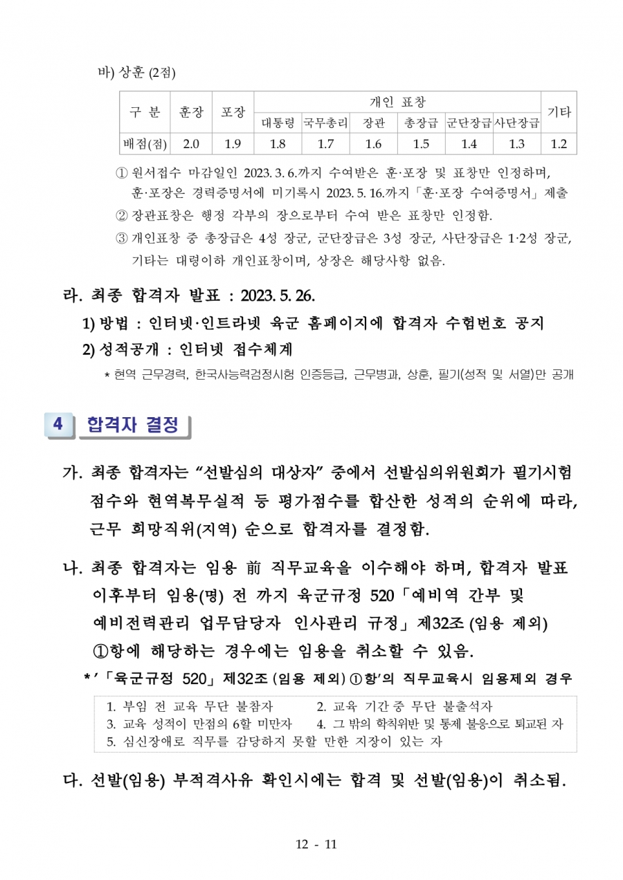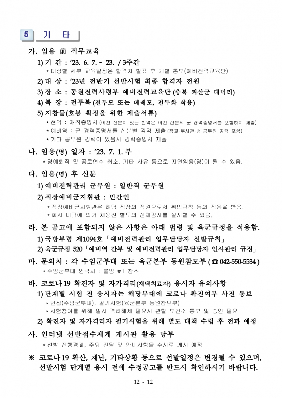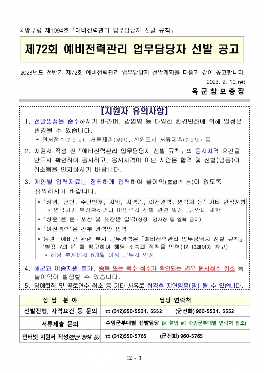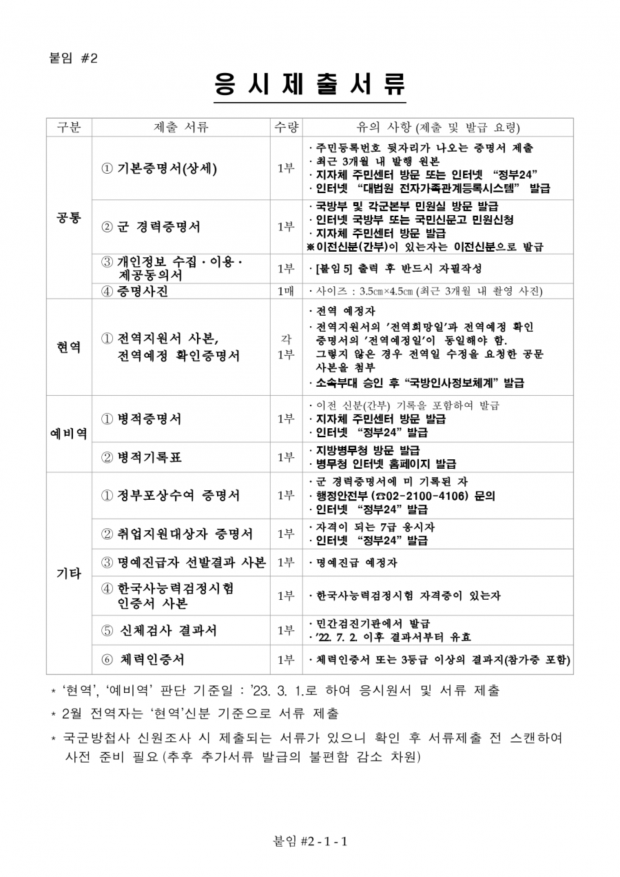 23년 전반기 예비전력관리 업무담당자 수정공고2차 해군