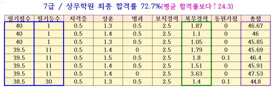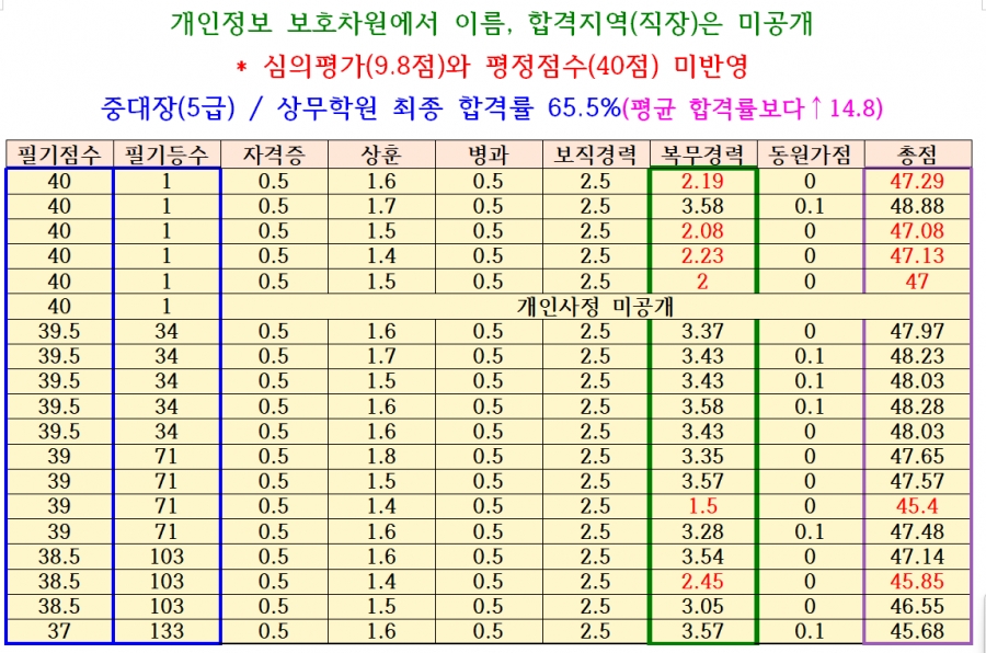 예비전력업무담당자(77회) 추가 합격자(육군)