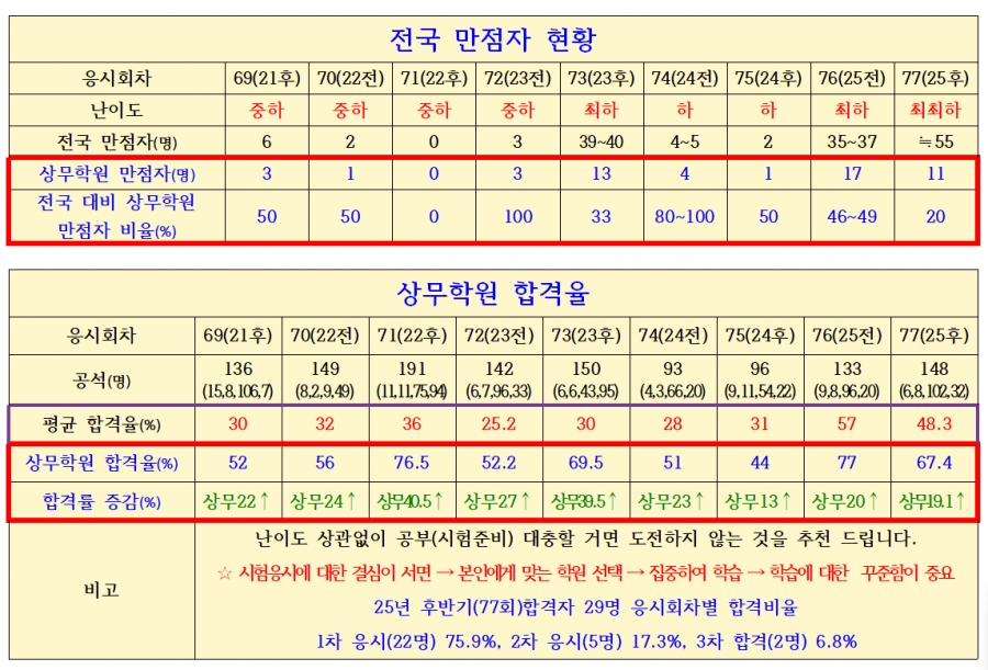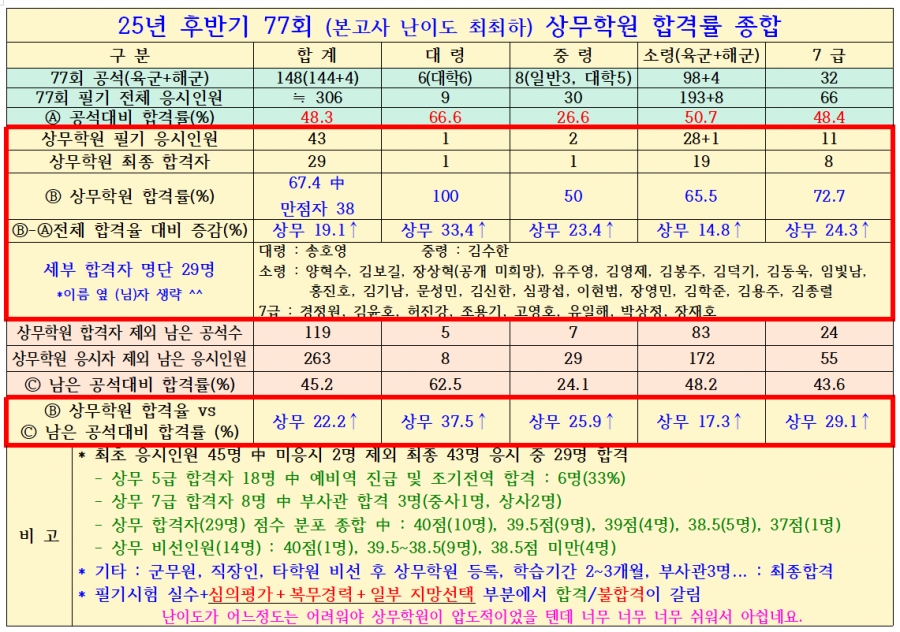 25년 후반기(77회) 상무학원 최종합격자(율) 종합