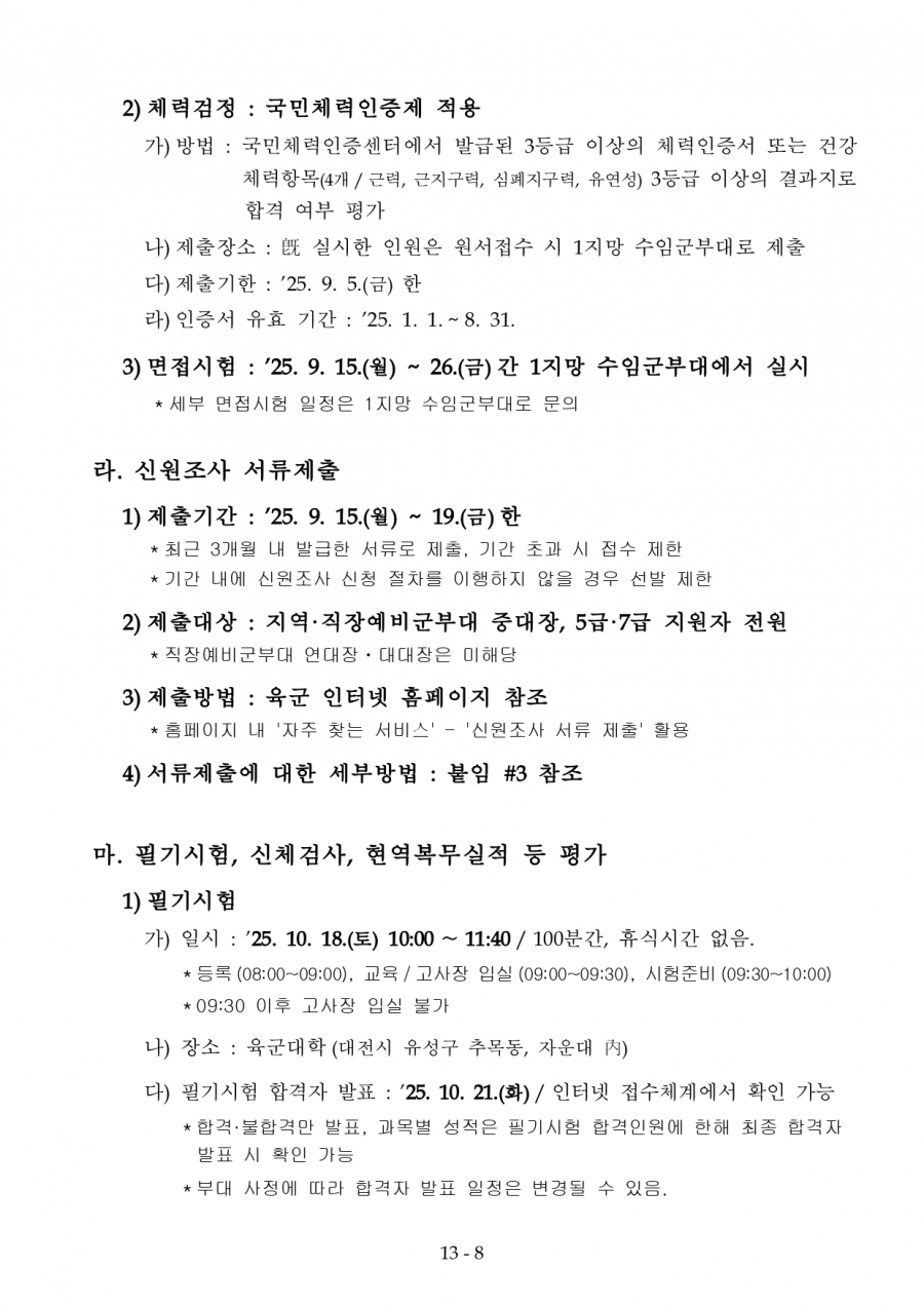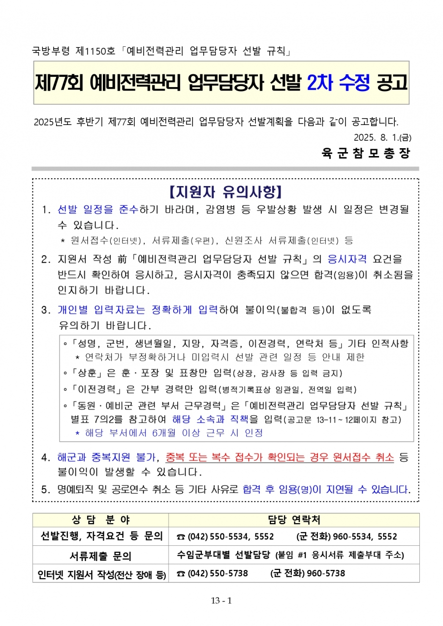 77회 예비전력업무담당자 육군 2차 수정공고