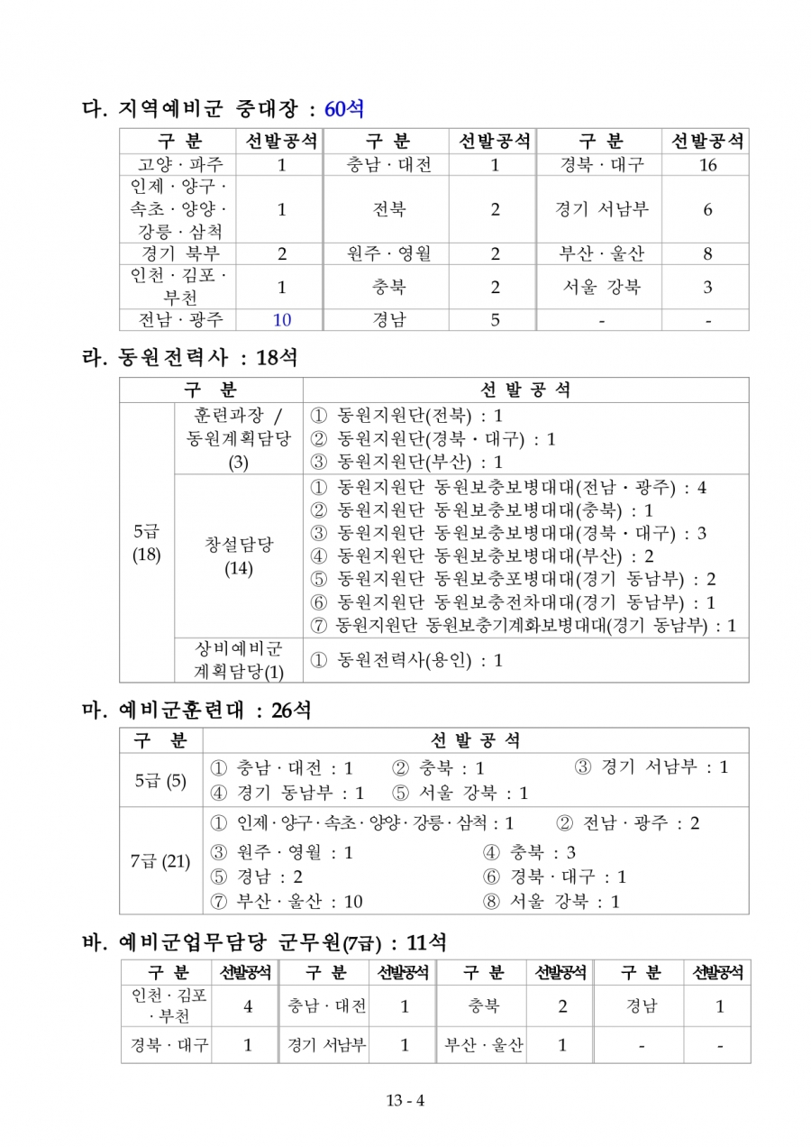 예비전력업무담당자(77회) 추가 합격자(육군)