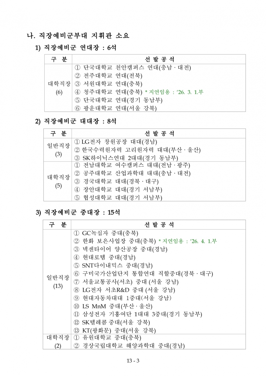 예비군조직편성운영에 관한 훈령 개정(26년 전반기 부터 적용)