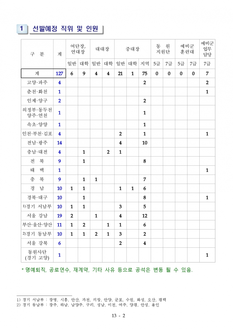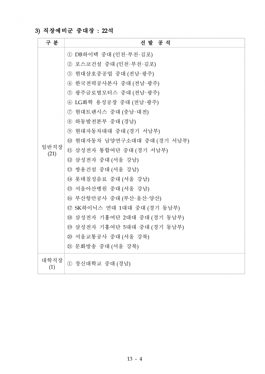 70회 육군 예비전력업무 담당자 1차 수정 공고문