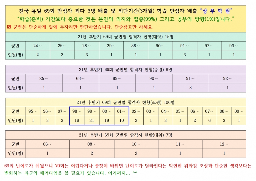 70회 육군 예비전력업무 담당자 1차 수정 공고문