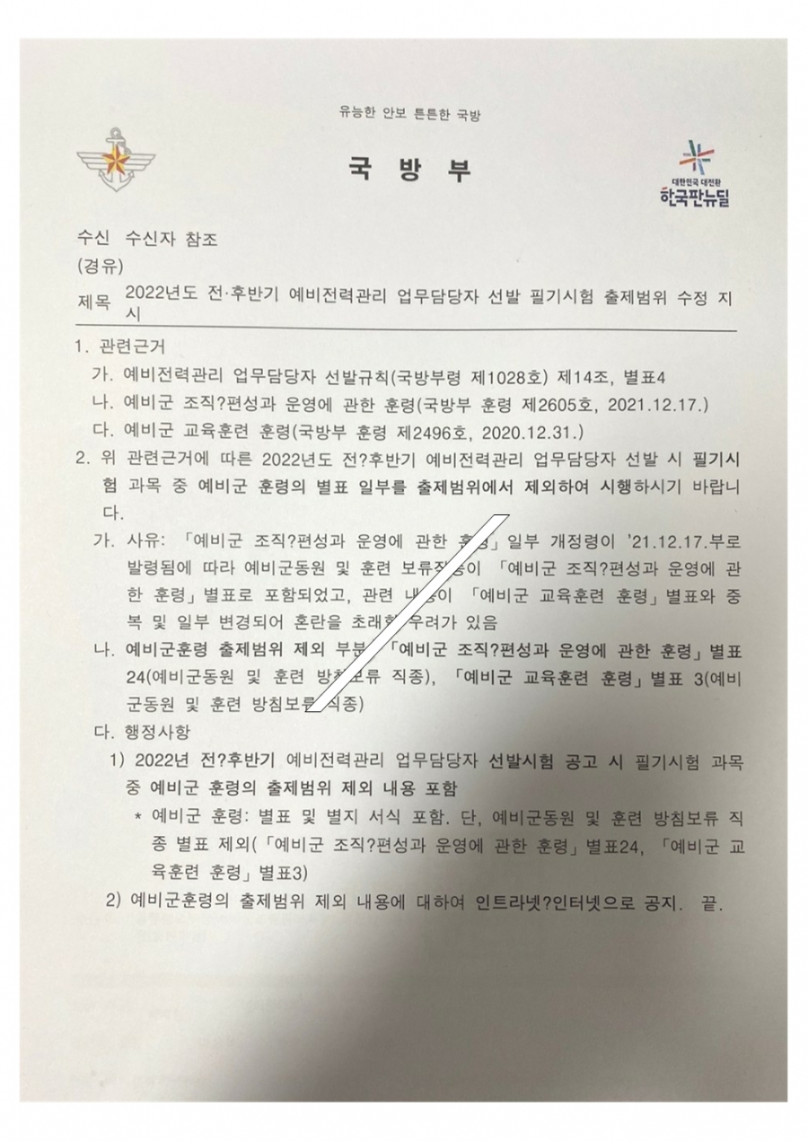69회 예비전력 업무담당자 수정공고