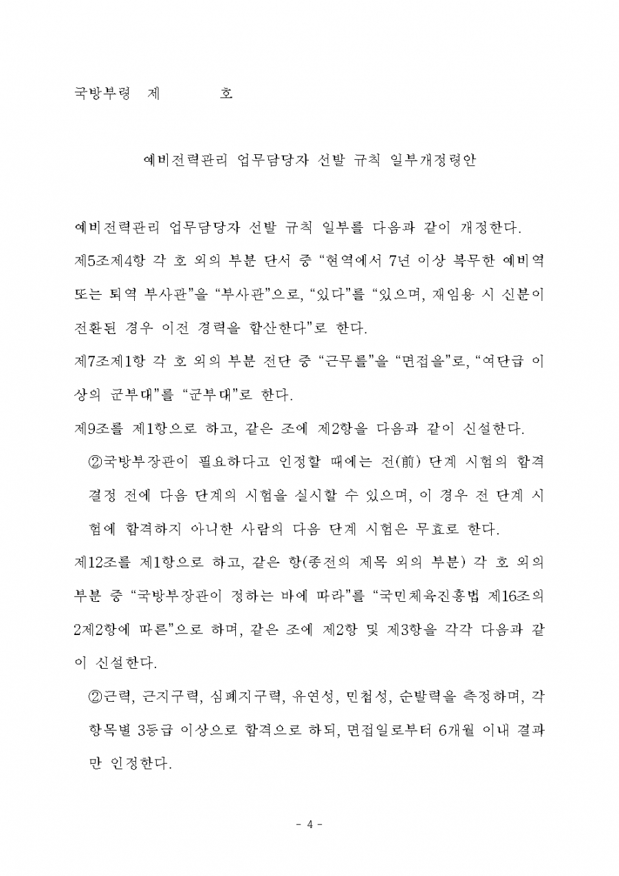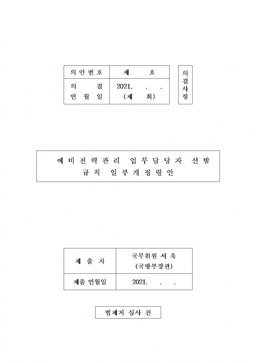 예비전력관리 업무담당자 선발규칙 일부 개정령안(안) 입법예고(기간 6.4~7.14) 현 진행 중