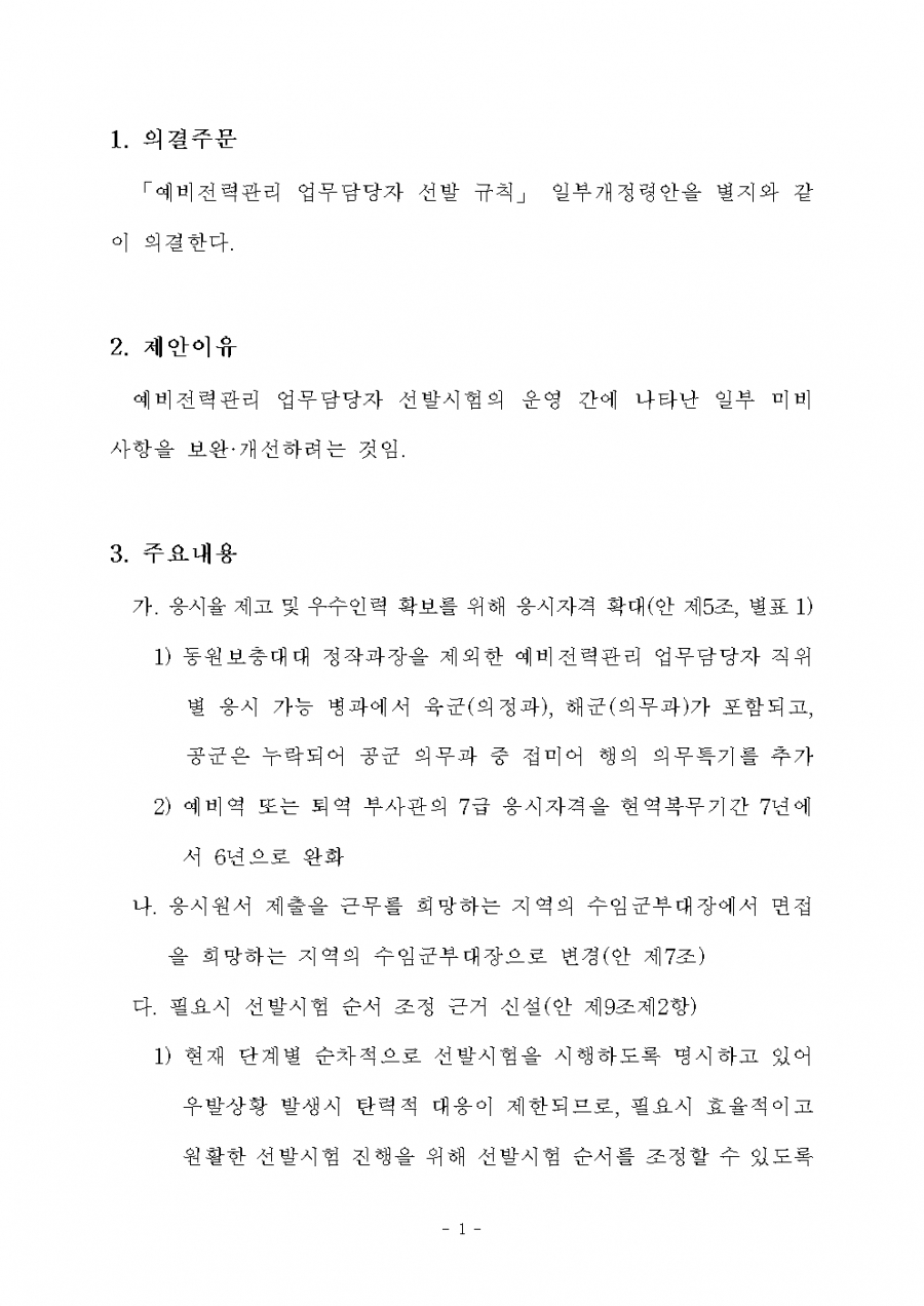 예비전력관리 업무담당자 선발규칙 일부 개정령안(안) 입법예고(기간 6.4~7.14) 현 진…