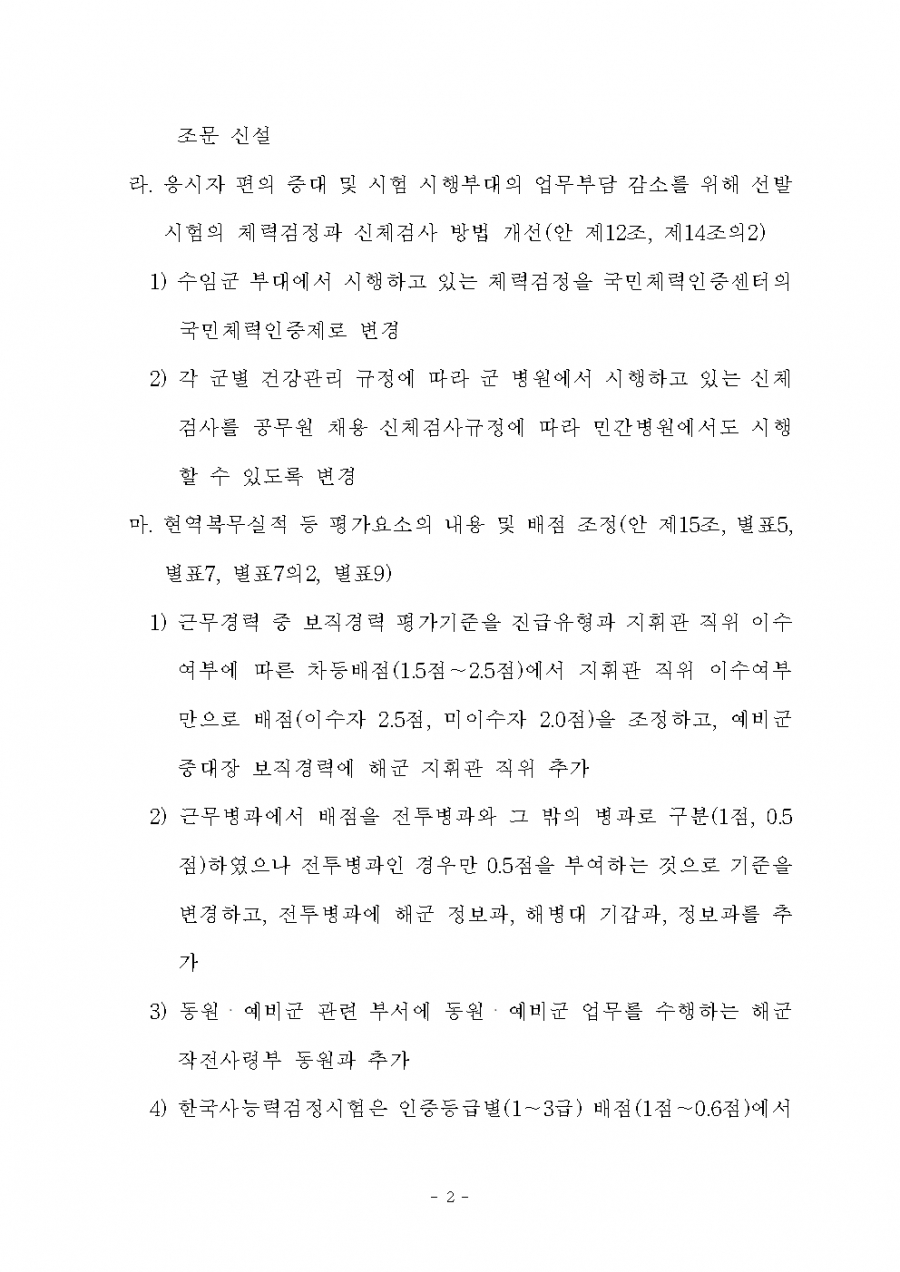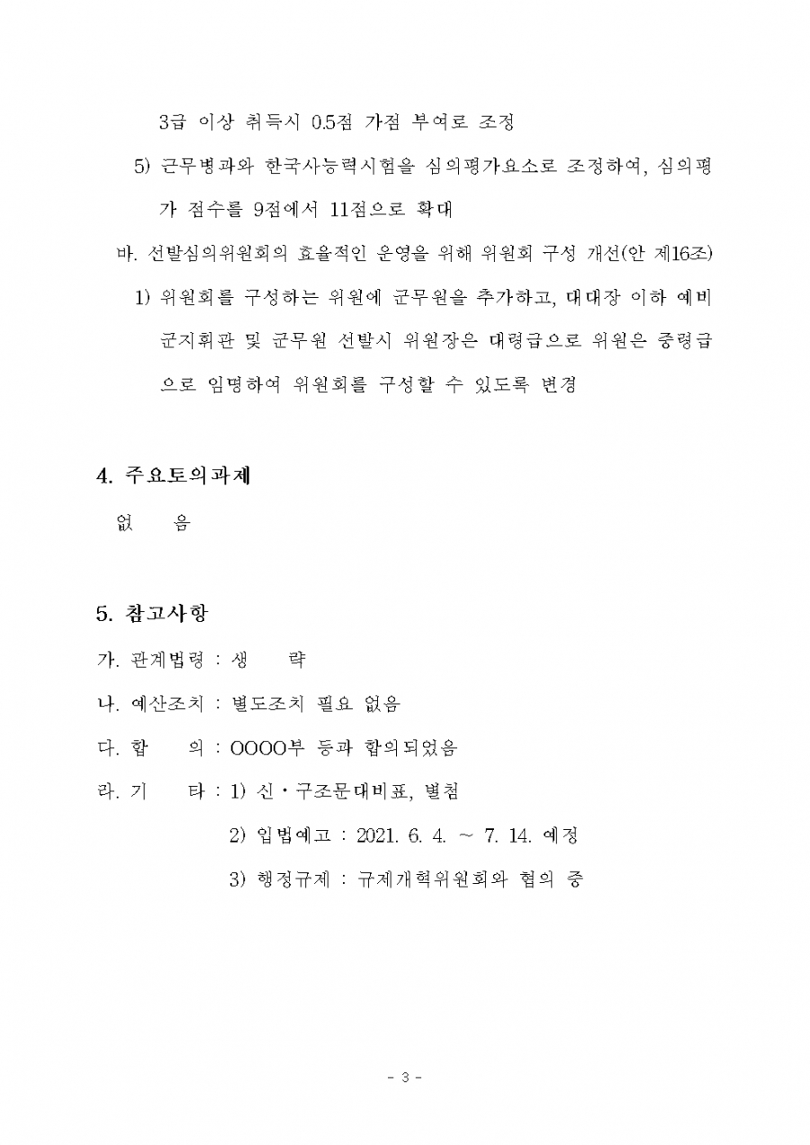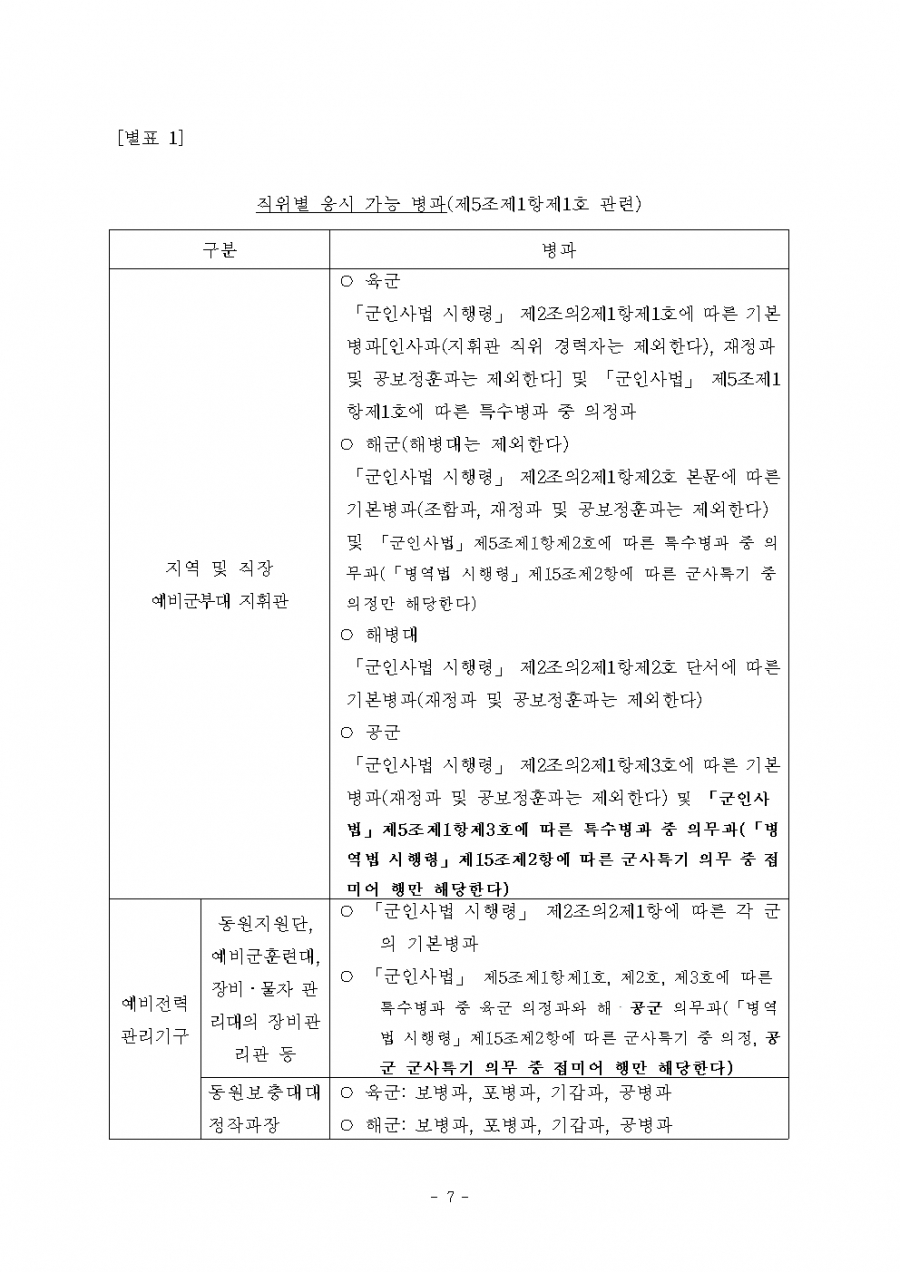 병역법 시행령 개정(6. 22) 및 시행(6. 23, 7.14) 21년 후반기 적용