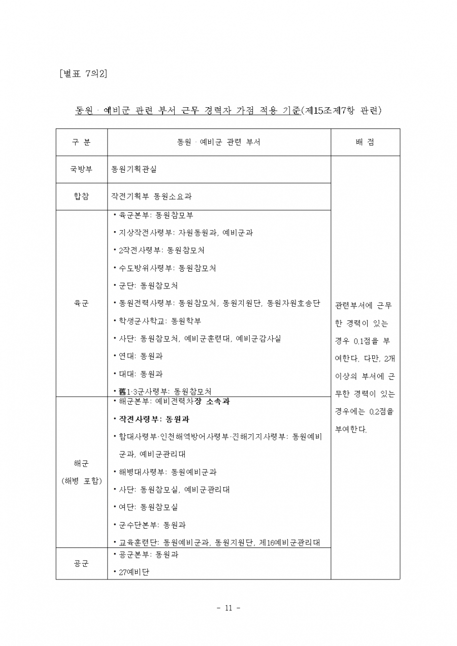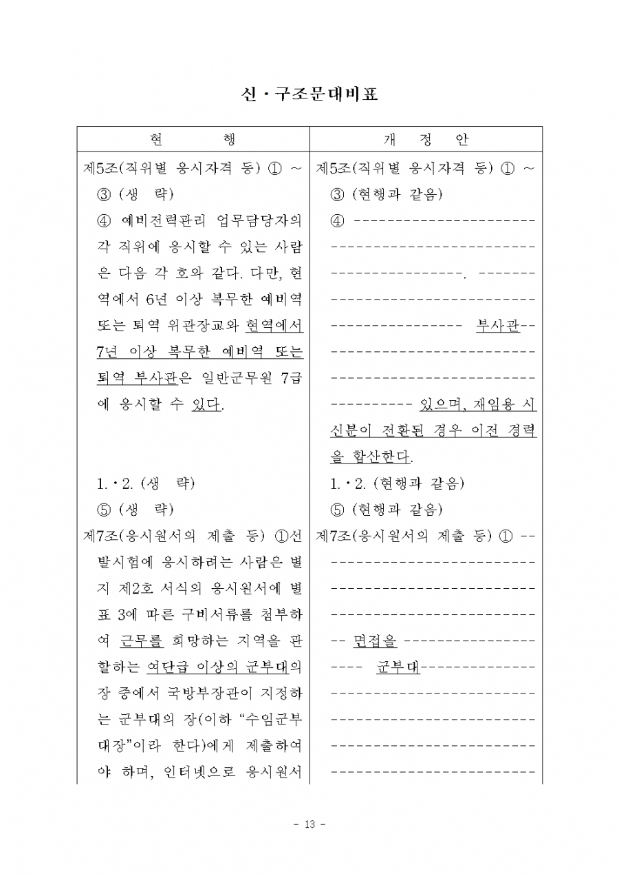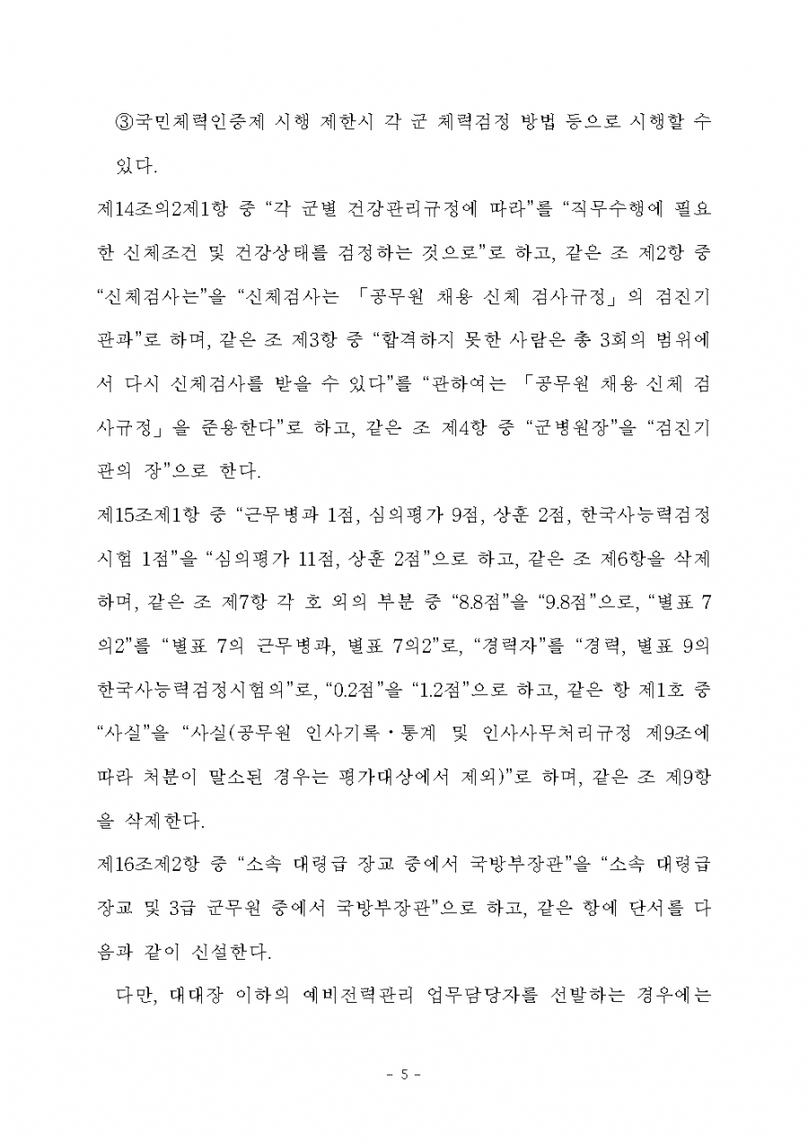 병역법 시행령 개정(6. 22) 및 시행(6. 23, 7.14) 21년 후반기 적용