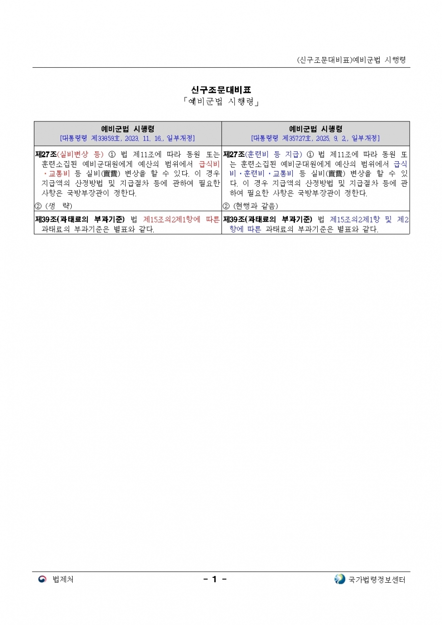 예비군법 시행령 개정(시행일 25. 9. 19) 26년 전반기부터 적용