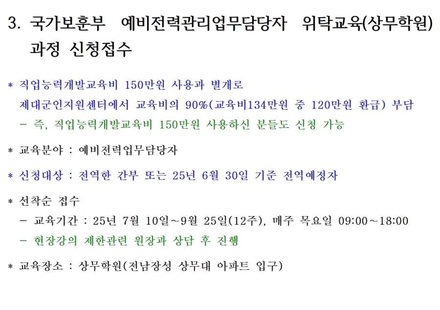 3. 보훈부 위탁 전문과정(예비전력 상무학원)