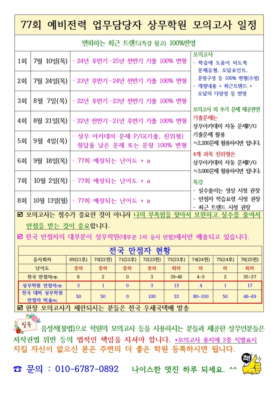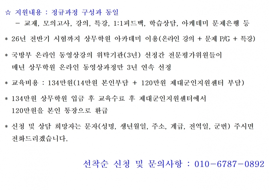 5. 상무 200만(합격시까지 모의고사 등 제공) 과정 등록생 분들 중 25년 후반기에 응시하시는 분들은 문자나 카톡세요.